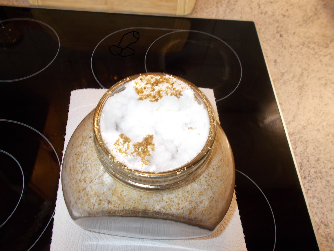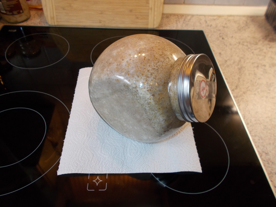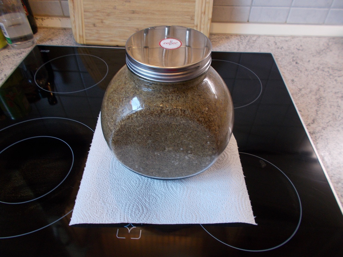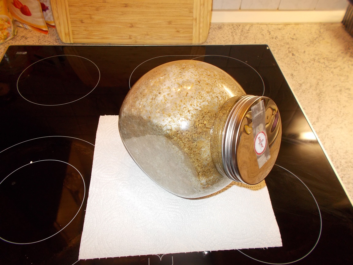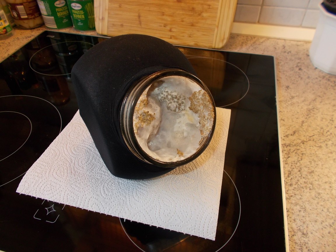 das mit dem Bonbon Glas sieht schick aus und die Austern können schön seitlich wachsen wie es sich ja für die Seitlinge gehört...
