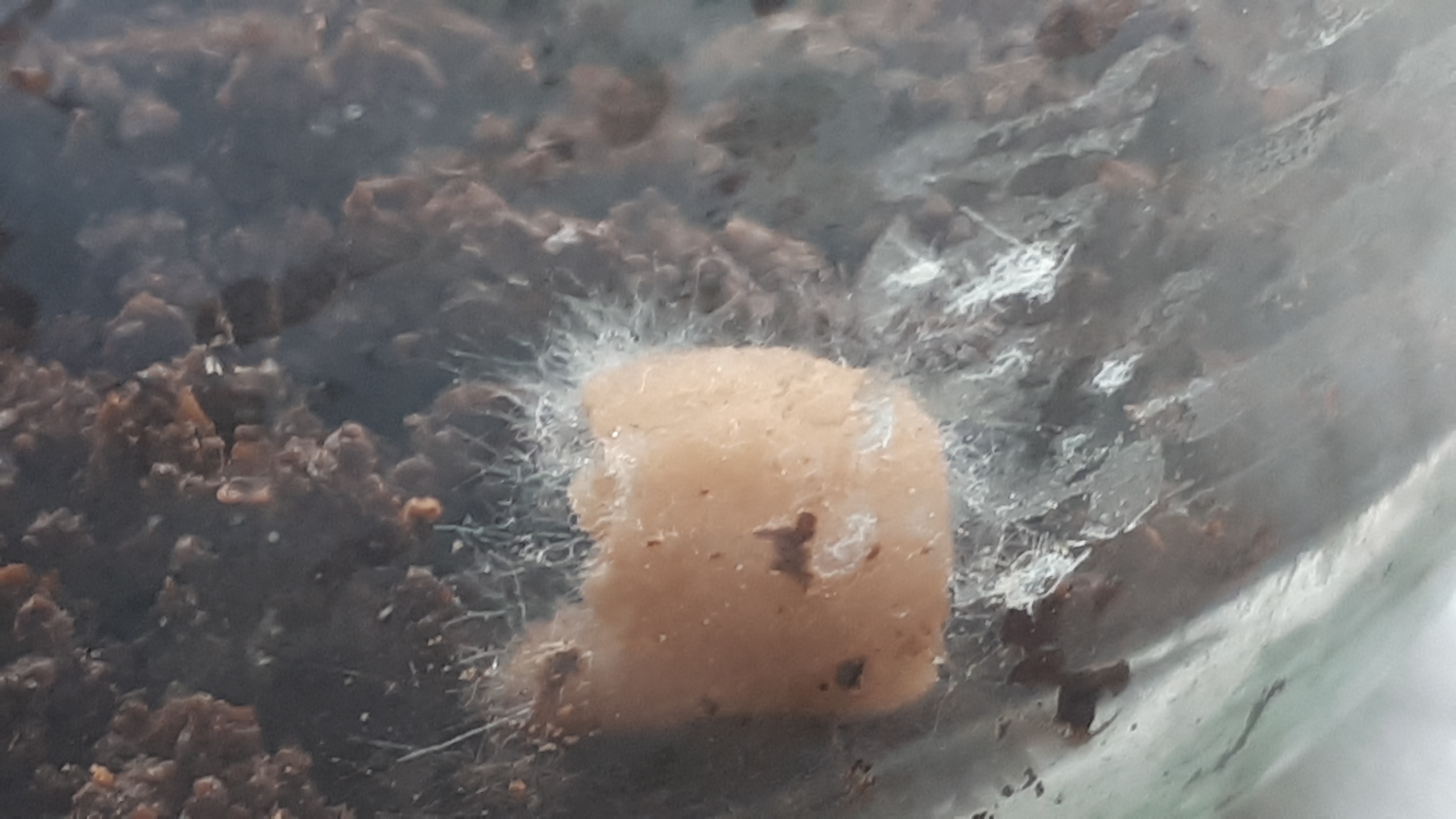 Da ich in letzter zeit endlich mal wieder ein paar morcheln gefunden habe, habe ich mir direkt 3 Gläser mit Kaffeesatz angesetzt, zum beimpfen habe ich einmal Stücke aus dem Inneren des Pilzes verwendet und die Stielbasis (Die bereits nach 1-2 Tagen Wachstum zeigte).