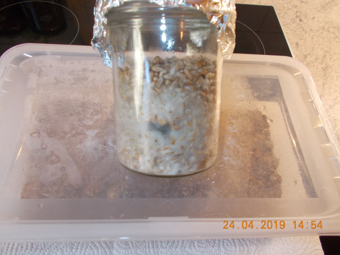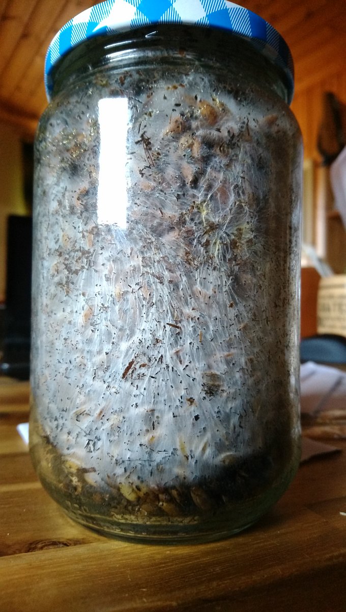 Ich habe nun insgesamt 3 Gläser mit 720 ml Brut. Die Brut besteht hauptsächlich aus Hafer (ganzes Korn mit Spelz) und etwas Pferdeäpfelkompost ohne Stroh. Ich hatte glaube ich in zwei Gläsern ein paar kleine Konti's, war schwer zu erkennen, vielleicht Grauschimmel. Allerdings war der Champi, sobald etwas auftrat, schnell zur Stelle und hat ohne zu mucken alles einfach überwachsen. Vielleicht wars aber auch gar keine Konti... Dann habe ich noch ein Glas, das hauptsächlich aus Mist besteht und ebenfalls komplett durchwachsen ist. Ob ich das auch hernehme oder weiter andere Gläser vermehre, da bin ich mir noch nicht schlüssig.