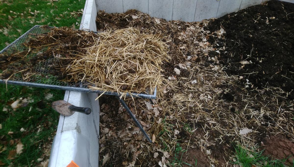 -Pferdemist mit Stroh, ca. ein Jahr alt aber eher wenig kompostiert, da es sehr trocken war.