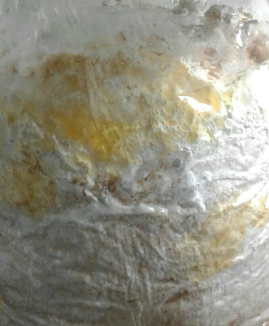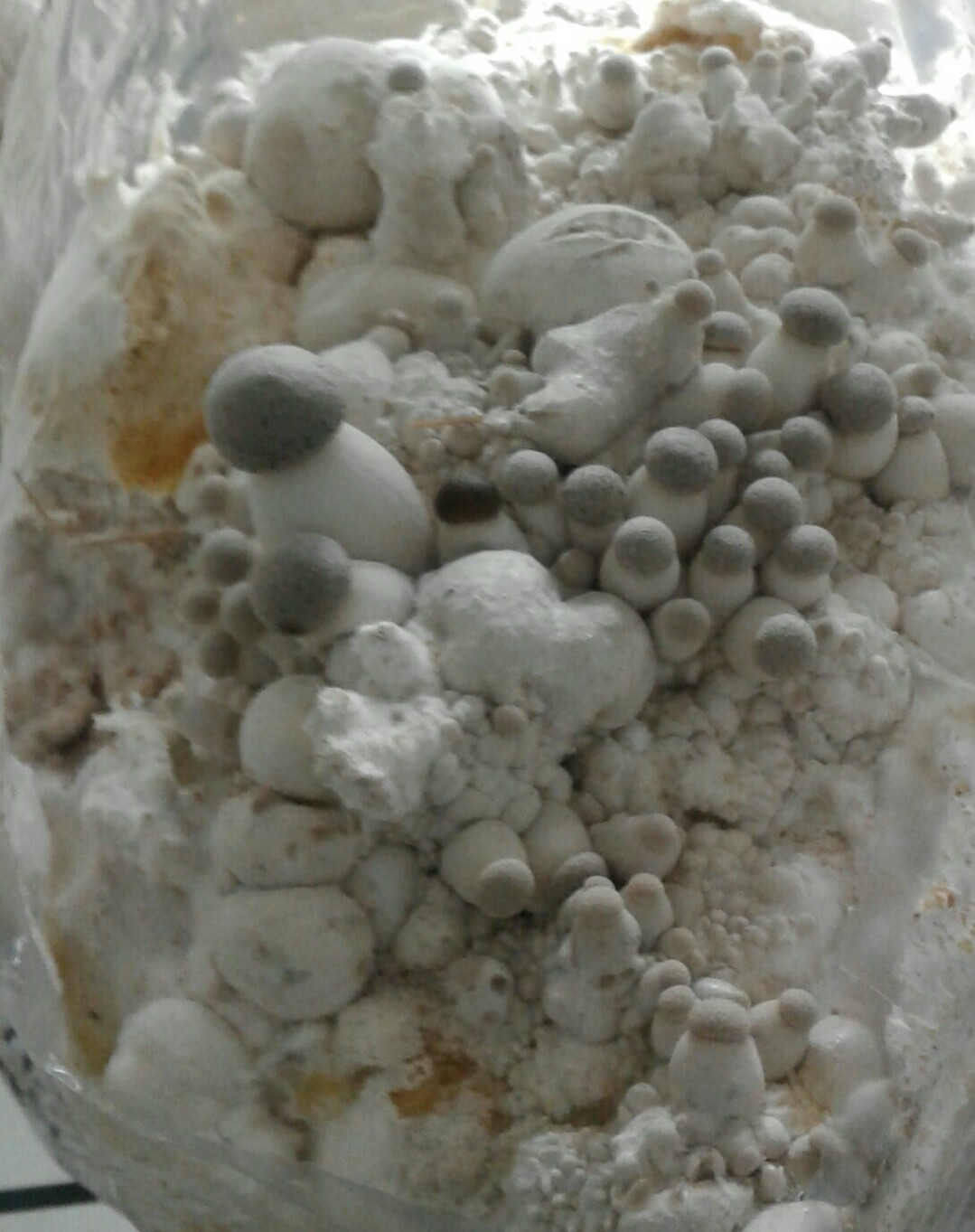 Was noch beunruhigend ist - man betrachte das Foto mit den kleinen ks - wenn diese Flüssigkeit obenauf (an der Luft) kleine Tröpfchen bildet entsteht auf dem Myzel/Fruchtkörper ein kleiner braun gräulicher Fleck! Gar nicht gut. Wenn die Flüssigkeit aber zwischen Block und Plastik eingeschlossen ist (anderes Foto) wird nichts braun. Liegt es daran dass auf die obenauf sitzenden Metaboliten Bakterien "fallen" (können) und sich davon gut ernähren können? Ich denke daraus entsteht dann das brown blotch Problem. Und das sind Bakterien. Ist denn ein solcher Block ein Ansteckungsrisiko für andere?