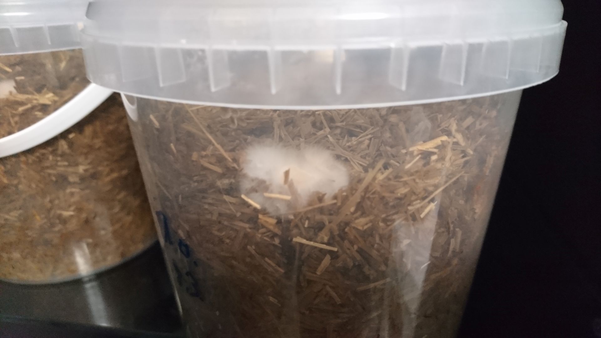 Für die Krause Glucke hatte ich Flax aka. Leinenstreu als Substrat in Betracht gezogen, da es kaum Lignin enthält (Die Glucke lässt Lignin beid er Holzzersetzung zurück --> Braunfäule). Allerdings will die Glucke auf dem Substrat nicht so wirklich, dafür scheint es dem saitenstiliigen Knoblauchschwindling zu gefallen.