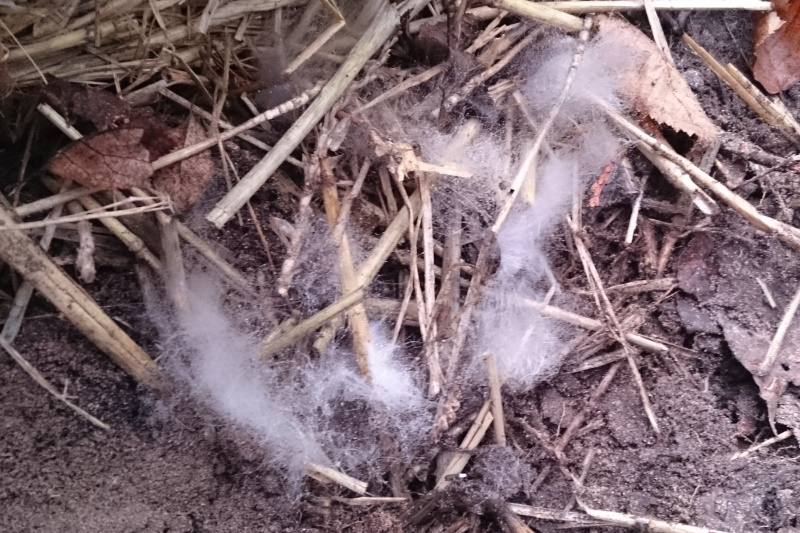 Interessant: Unter der Folie hat sich an mehreren Stellen neben den Ballen ein weicher Flaum gebildet: