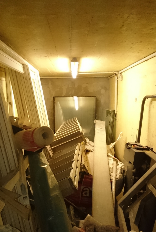 Eher diese Abstellkammer, hat vielleicht so knapp 15m2. Liegt im Erdgeschoß, die Außenwände sind 2m (!) dick.