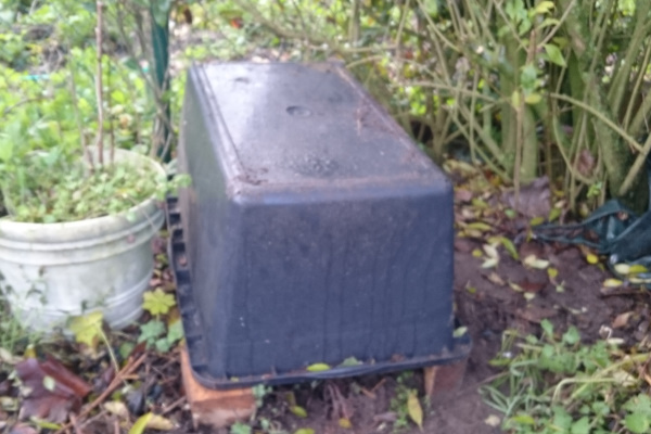 Für draußen braucht es also eine Möglichkeit, das lose Stroh irgendwie in Form zu bringen. Vielleicht so rechteckige Maurerkübel?