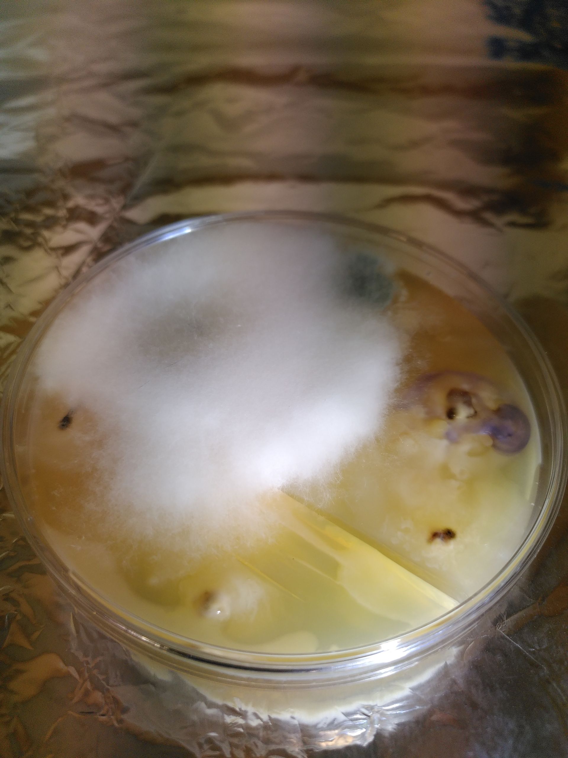 Jeder Mensch, der schon einmal eine Morchella Esculenta auf einem Agar-Medium in einer Petrischale wachsen gesehen hat, möge bitte auf den folgenden Bildern das M.e. Mycel identifizieren und einen Tipp abgeben, ob hier irgendwo eine M.e. wächst!