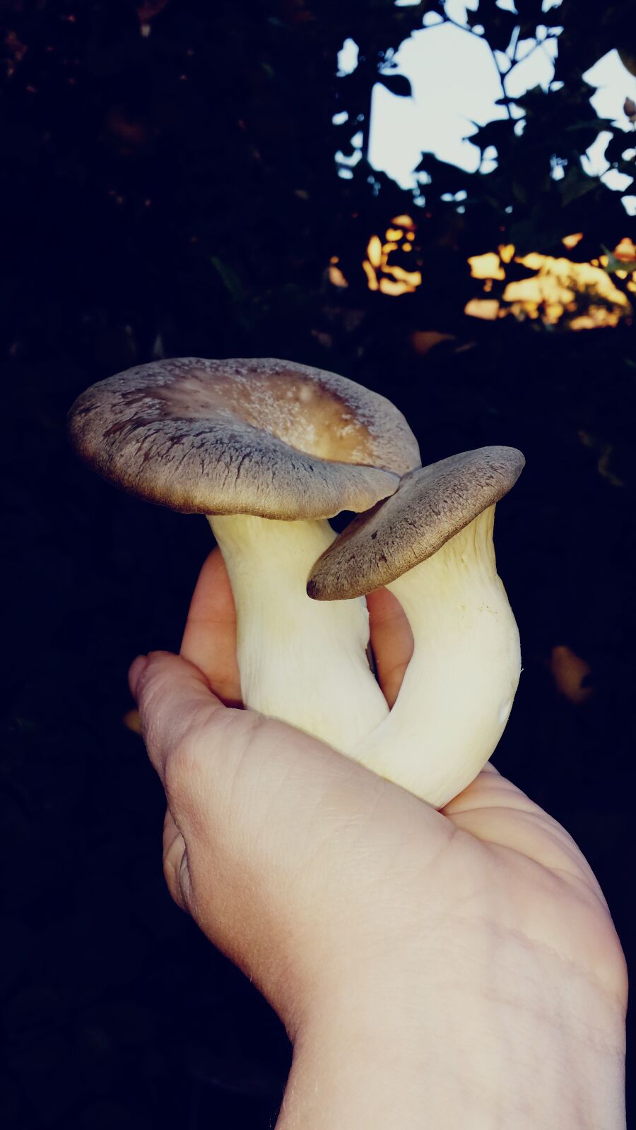 P.s. Bild Frau hat kräuterseitling im Sonnenuntergang fotografiert.