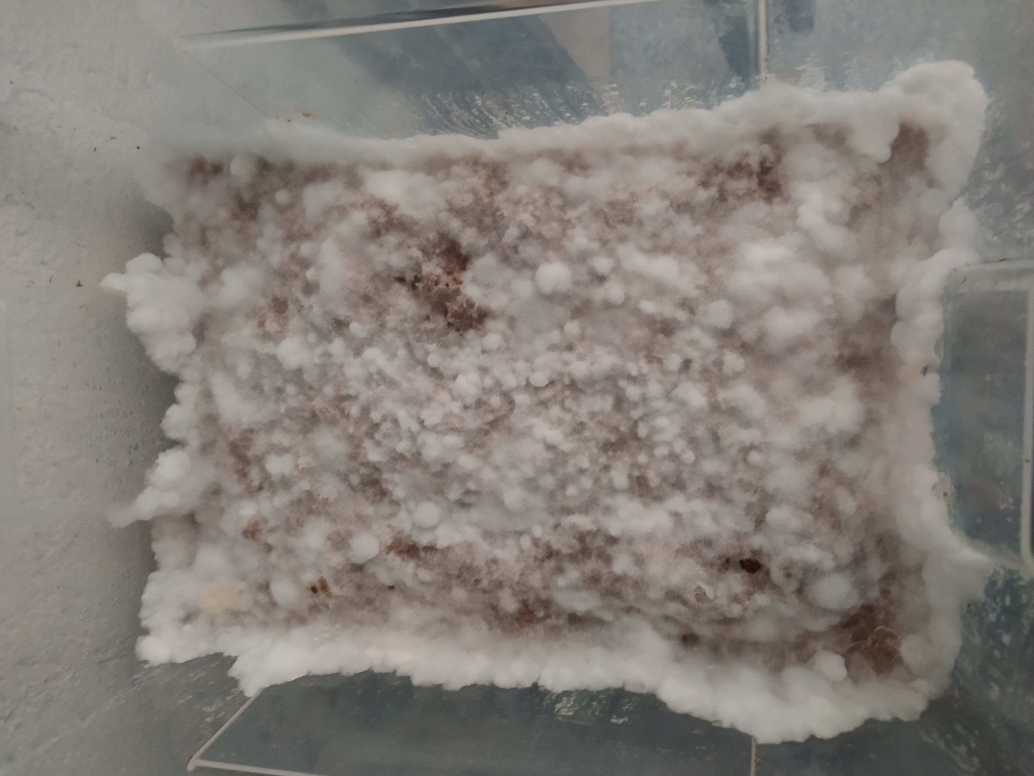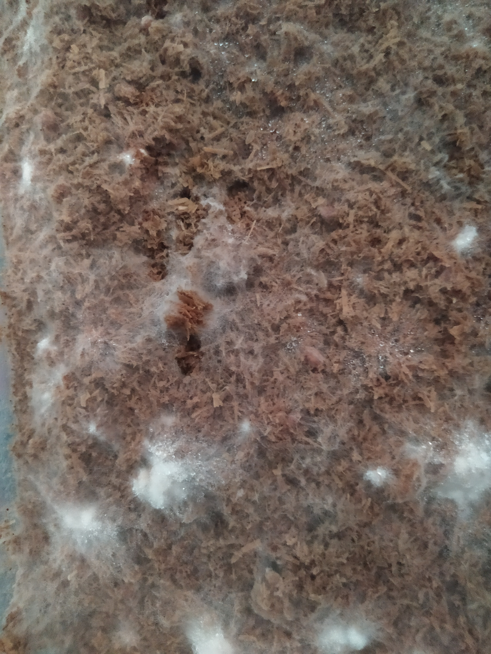 Ich dachte, wenn das Myzel von Sommerseitling ist, es kann im 26 Grad Celsius locker leben. Heute habe ich das doch umgestellt (sind 23 Grad). Mal sehen was rauskommt.