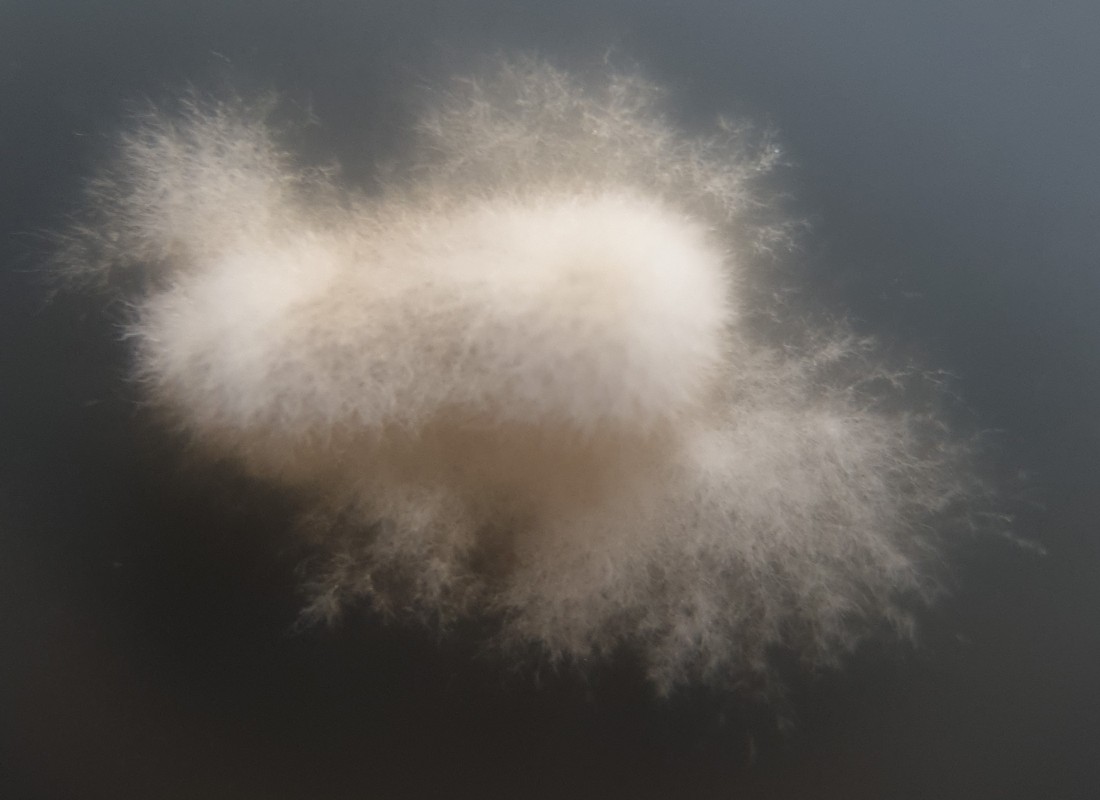 Ich werde wohl mal einen etwas größeren Agar Flecken mit kleinen Kolonien ausschneiden und auf eine frische Platte überführen bevor das Konti-Myzel alles überwuchert.