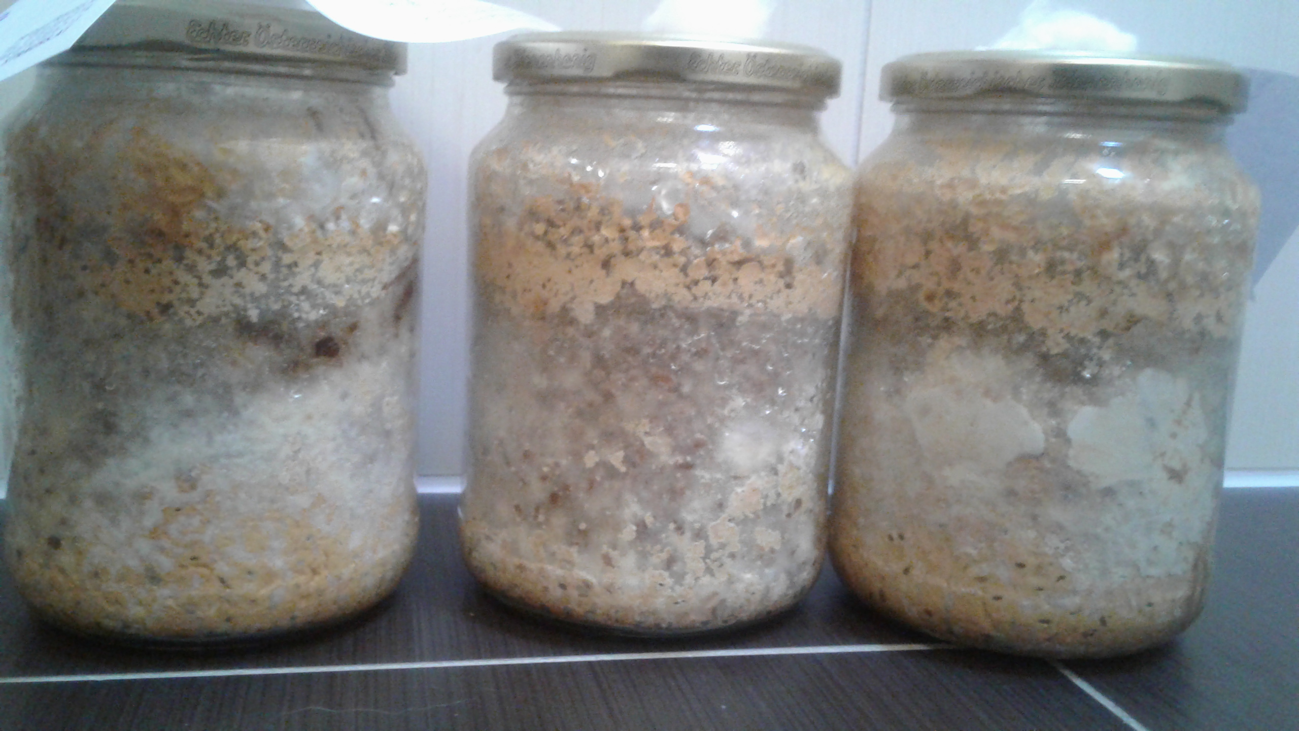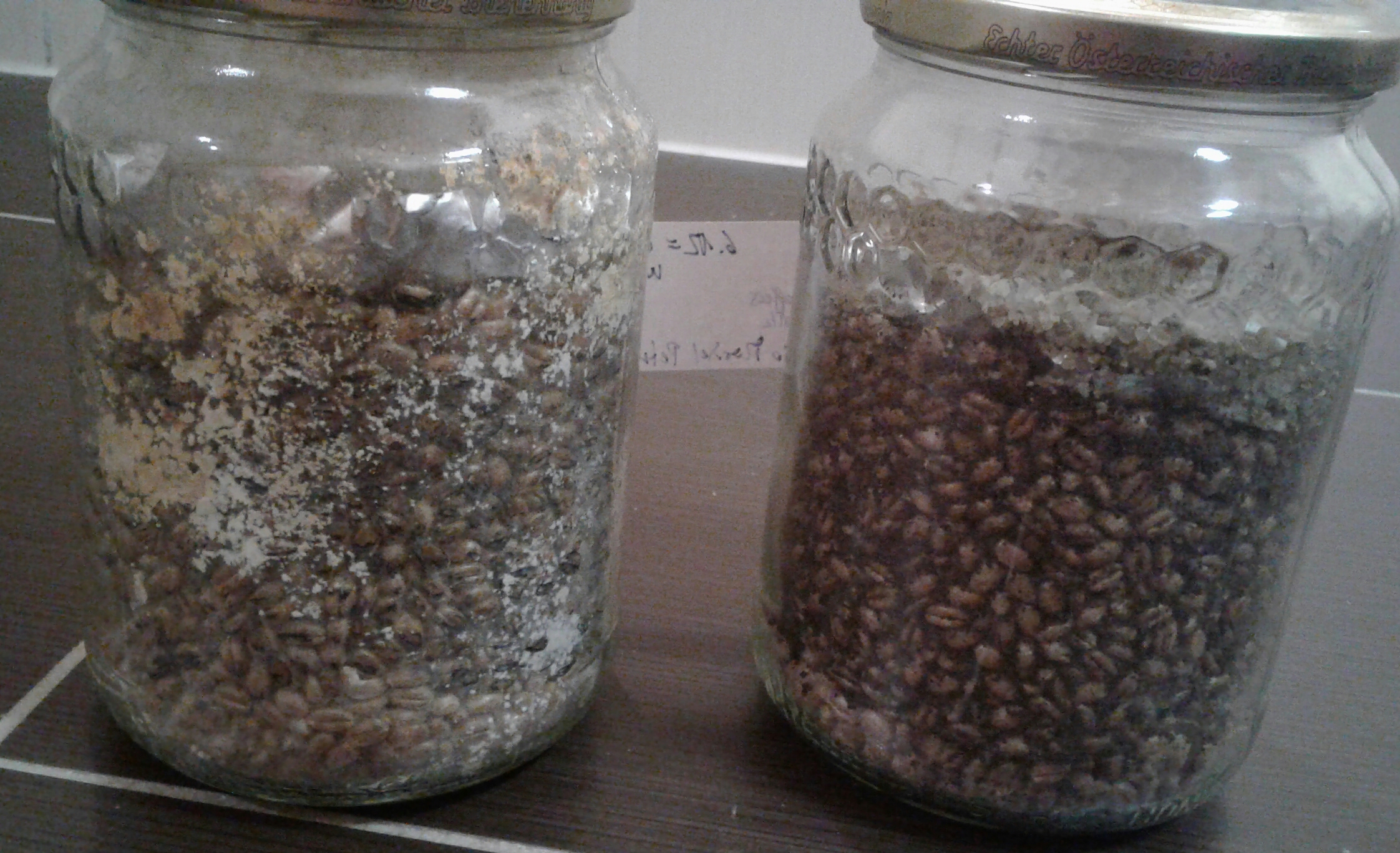 Am 6. 12 habe ich auch bei den anderen Gläsern (bis auf eines) mit meiner oben erwähnten Kultur nachgeimpft, weil noch kein mycel sichtbar war. Mittlerweile sind alle mehr oder weniger durchgewachsen.