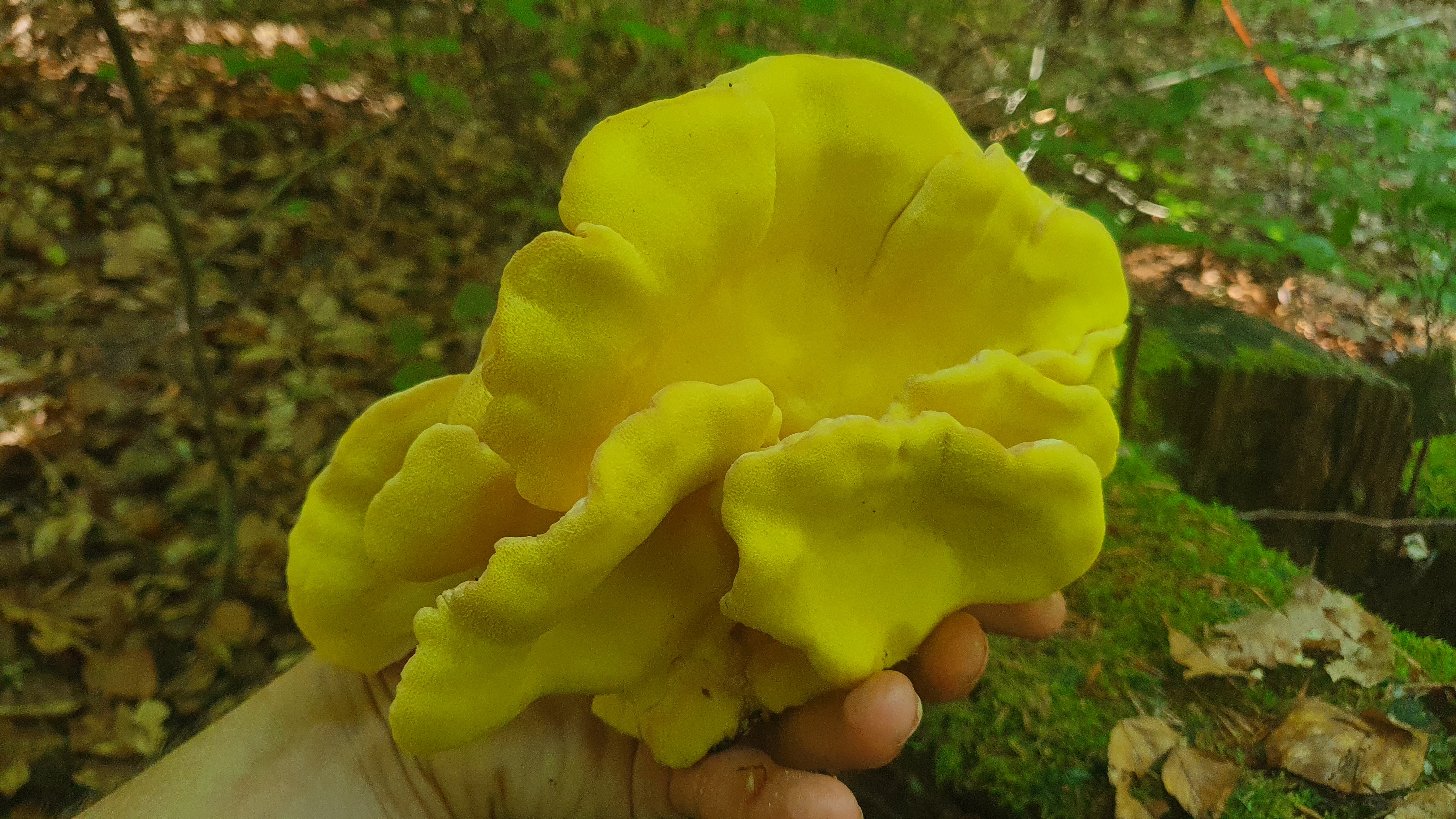 Schwefelporlinge geb es auch noch, ich mag sie was älter gerne, jung sind sie noch recht weich aber im Alter haben sie diese schöne faserige Konsistenz wie Hühnchen - paniert einfach genial.