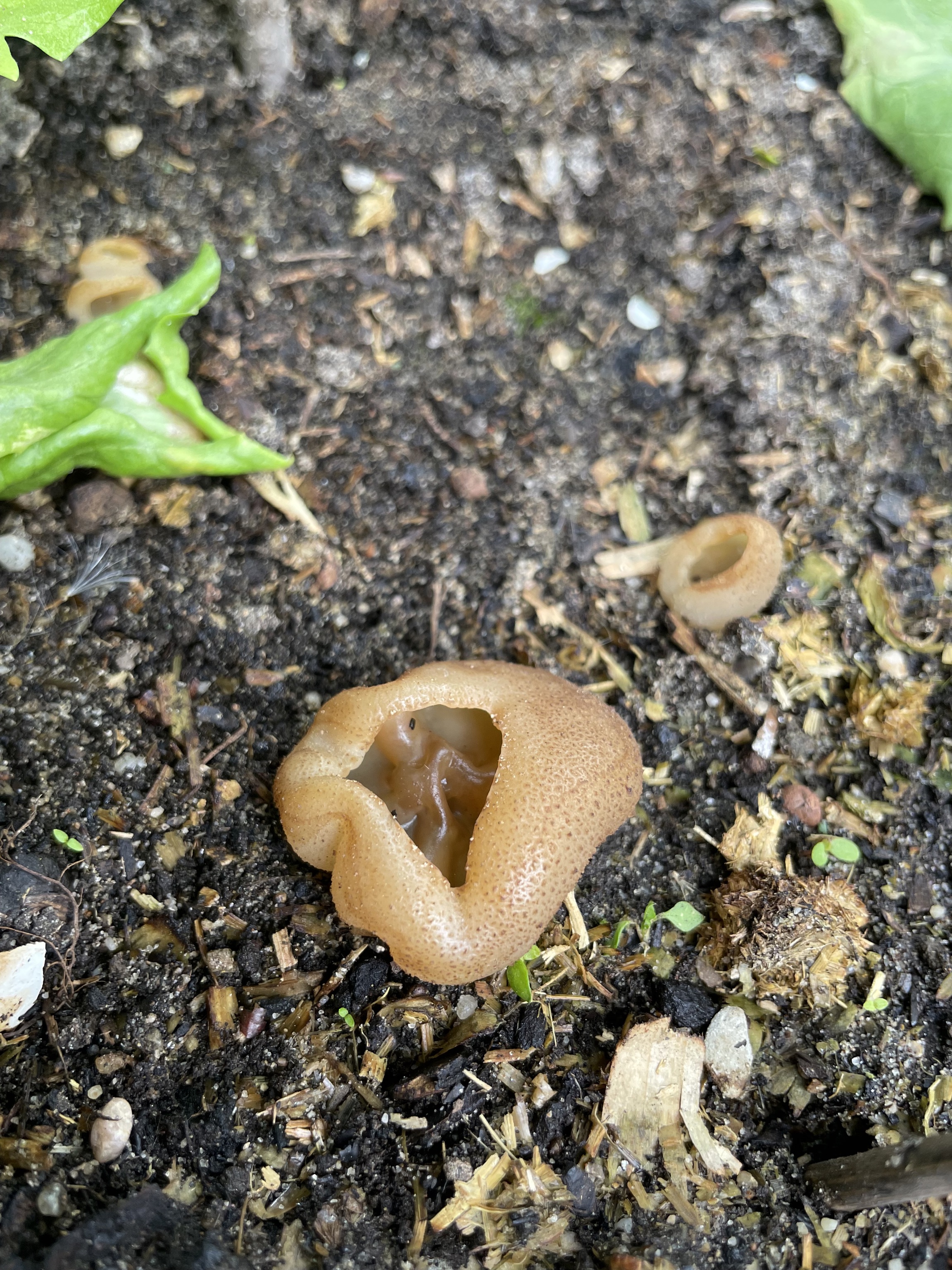 Und das war meine erste Böhmische Verpel, was habe ich mich über diesen Fund gefreut. Dieser Fruchtkörper ist noch recht jung, da sich der cremefarbene Stiel noch nicht gestreckt hat. Auch der hirnartig gewundene Hut ist sehr schön zu erkennen.