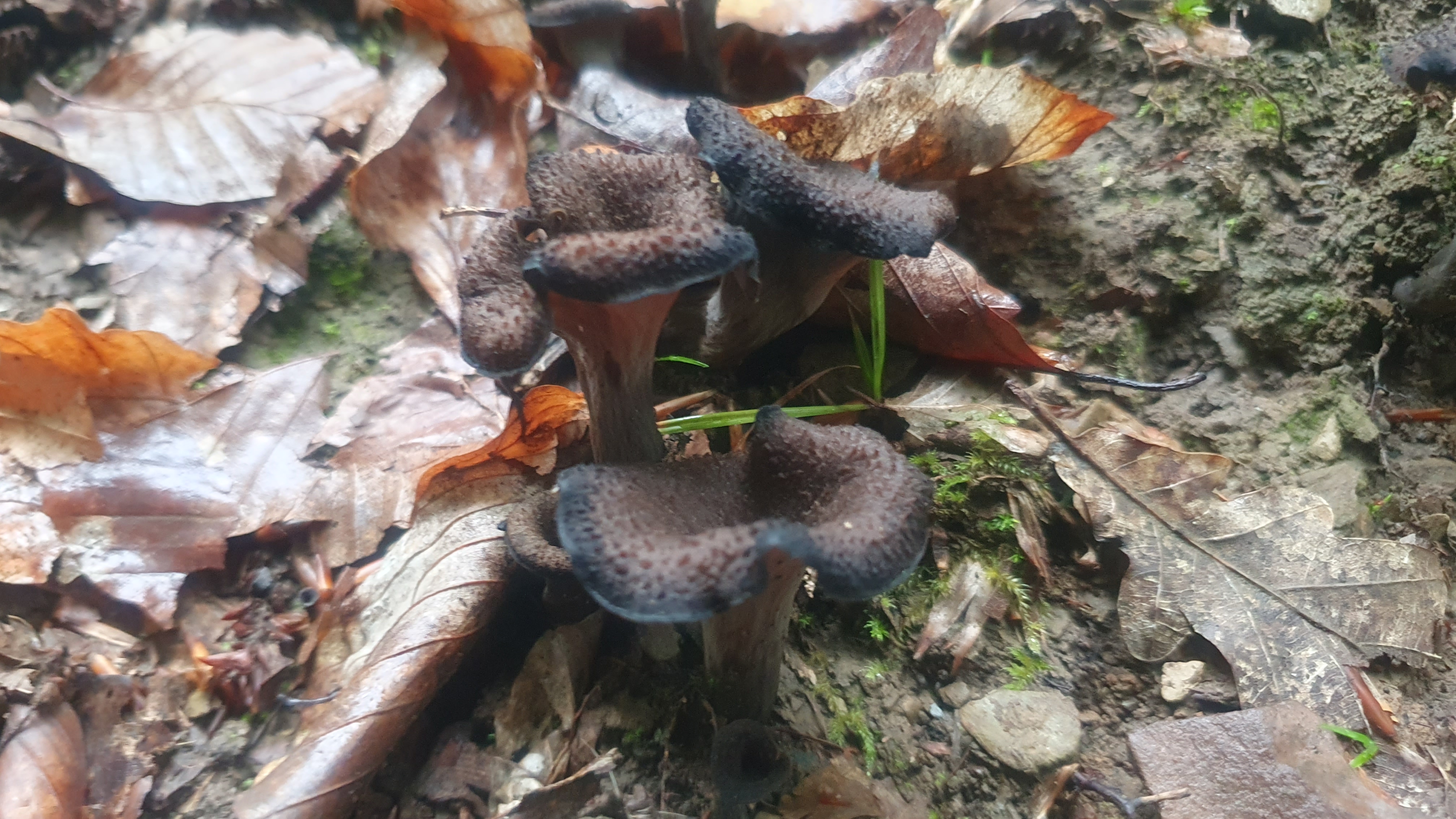 Dieses Jahr war es viel zu einfach, kein langes Suchen schon standen sie da, aber trotzdem war die Freude riesig über einen meiner Lieblingspilze, die Totentrompete (Craterellus cornucopioides), ein Mykorrhizapilz, welchen man überwiegend unter Laubgehölzen (Buche) finden kann, seltener bei Nadelgehölzen. Er bevorzugt Standorte mit Basenhaltigen Ausgangssubstraten für die Bodenbildung, und wächst gerne in der Naturverjüngung mit Altbäumen dazwischen aber auch im Hochwald, etc. kann man fündig werden.