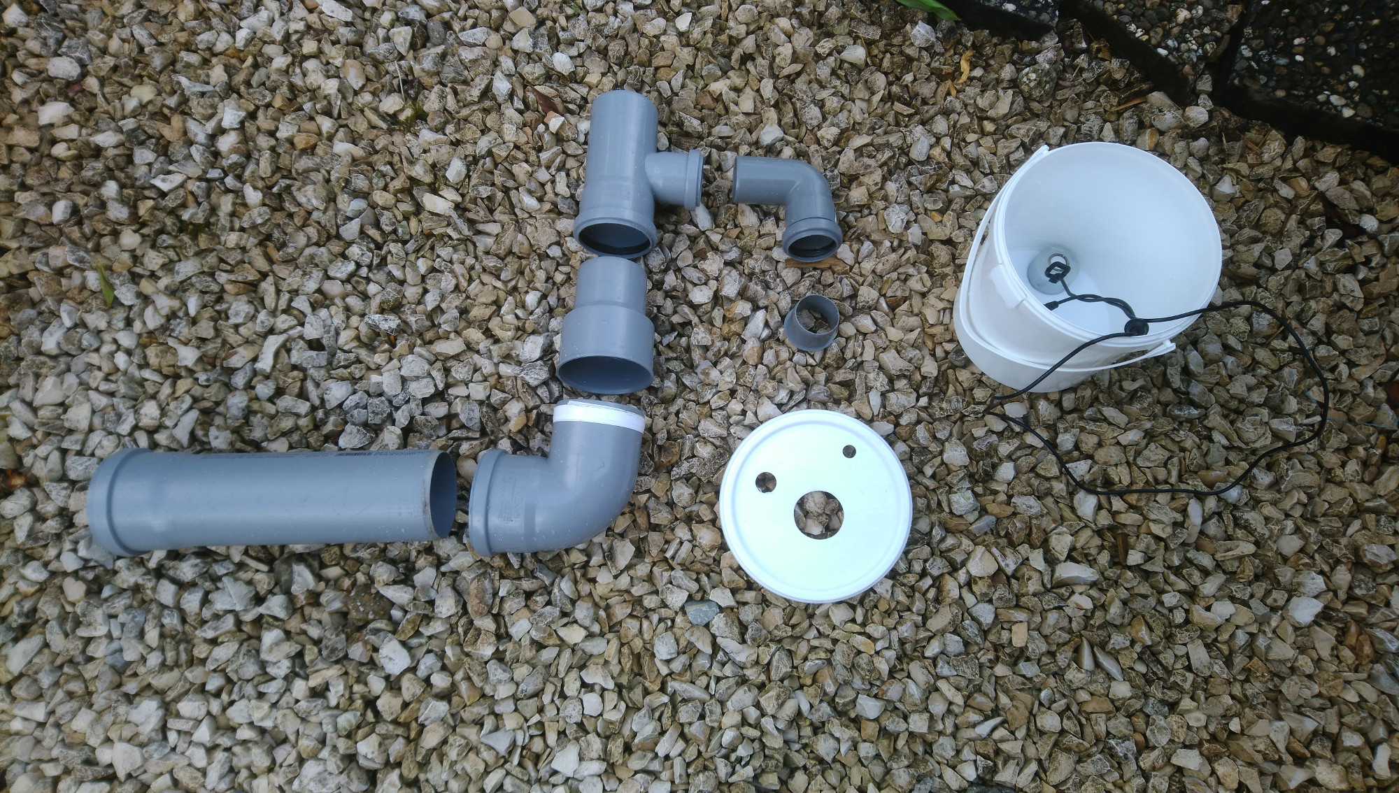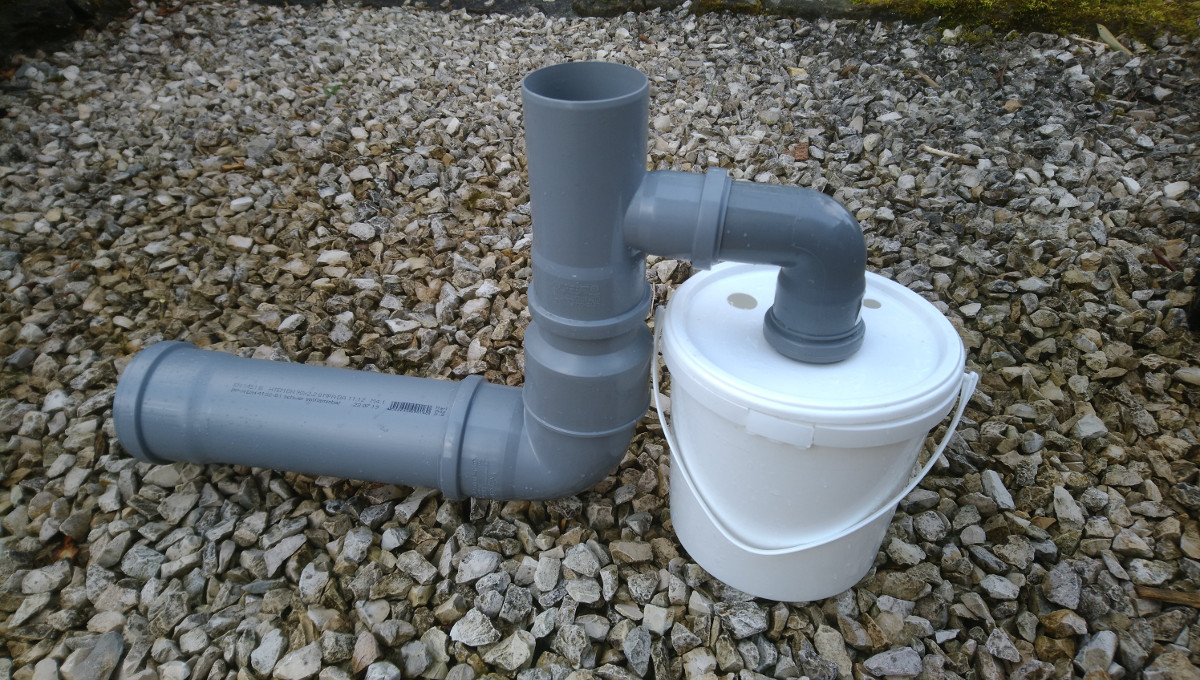 -Aus dem Muffenstopfen wird der Deckel herausgetrennt, der Stopfen dient nur als Befestigung des DN 50 Rohrbogens an den Deckel vom Eimer.