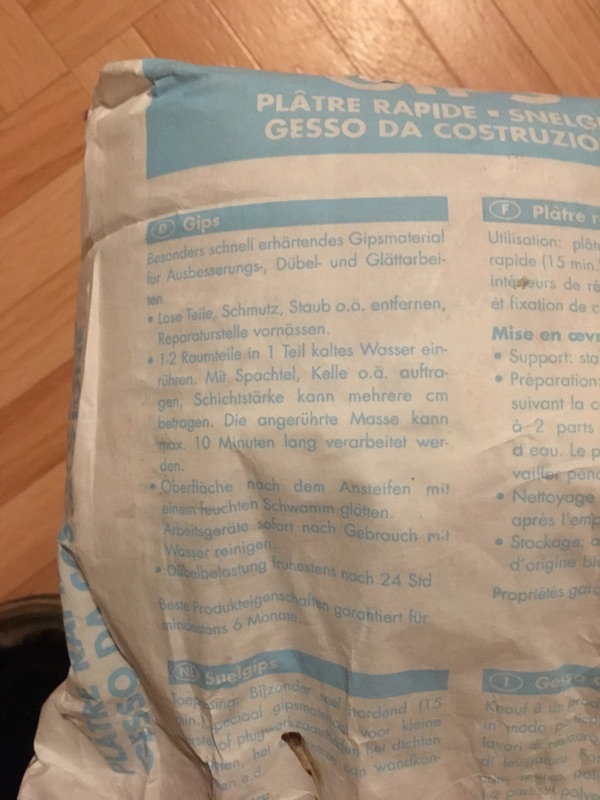 Schnellgips 5kg, mehr steht nicht da. Aber Elektrikergips könnte es schon sein. Wir haben damit die verlegten Leitungen zugespachtelt. Gekauft, glaube ich, beim Toom.
