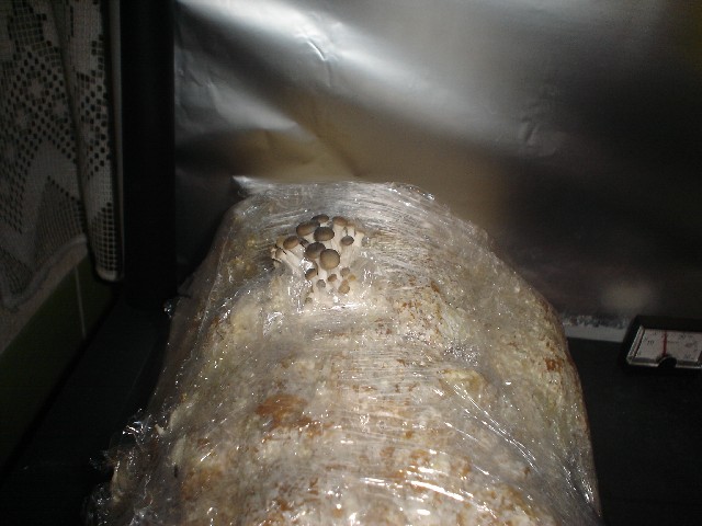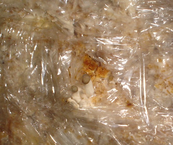 Wäre aber schon besser, wenn nur an den Löchern Licht reinkommt. Da die Blöcke mit jeder Erntewelle ein wenig schrumpfen, sollte man ab und zu nachspannen, also z.B. lockere Folienbereiche falten und mit einem kleinen Stück Klebeband fixieren. Andernfalls würden auch die Trauermücken unter der Folie herumkrabbeln. Komplett wird man die Primordien unter der Folie wohl nicht verhindern können, normalerweise stellen sie aber ihr Wachstum wieder ein und werden zu Mycel.