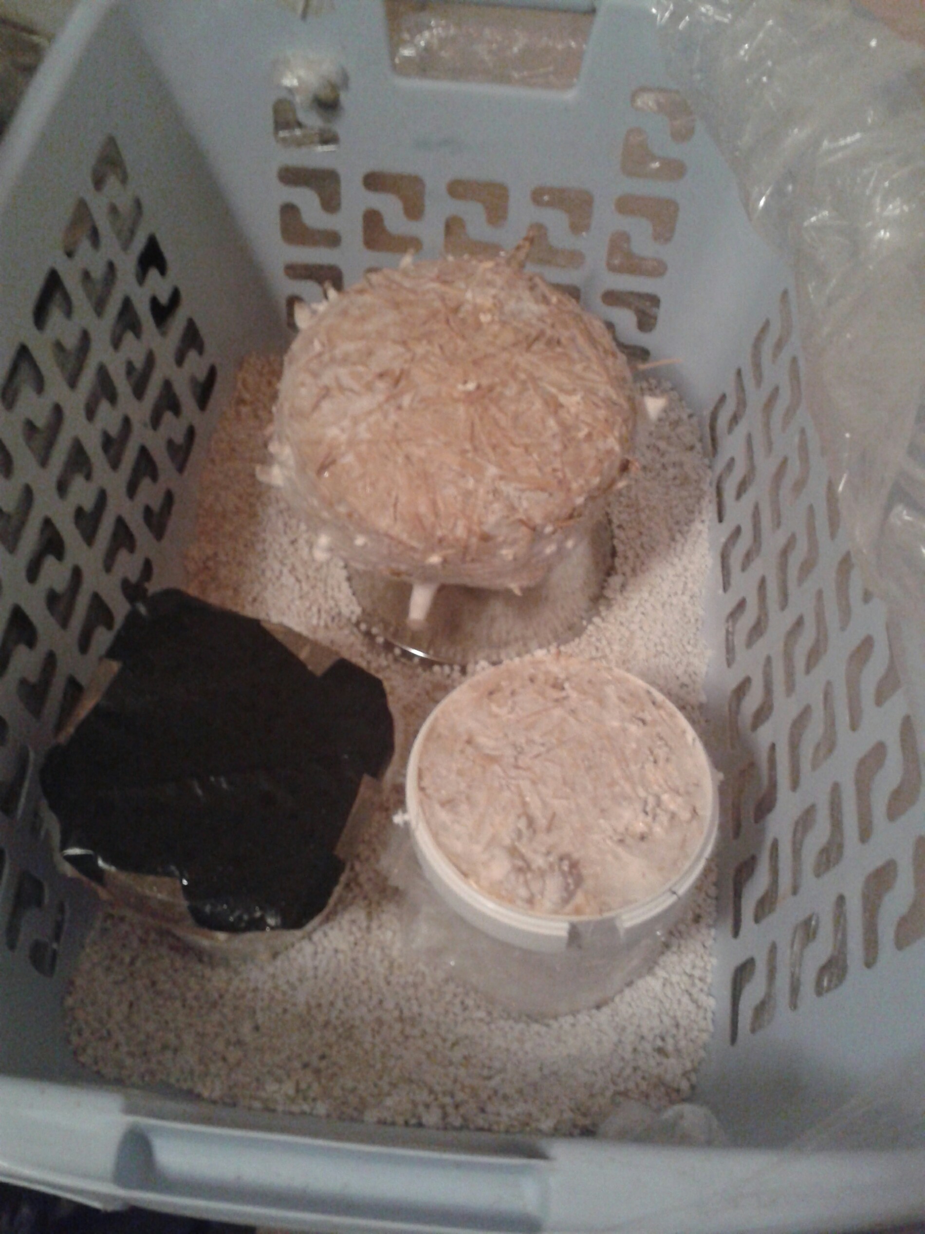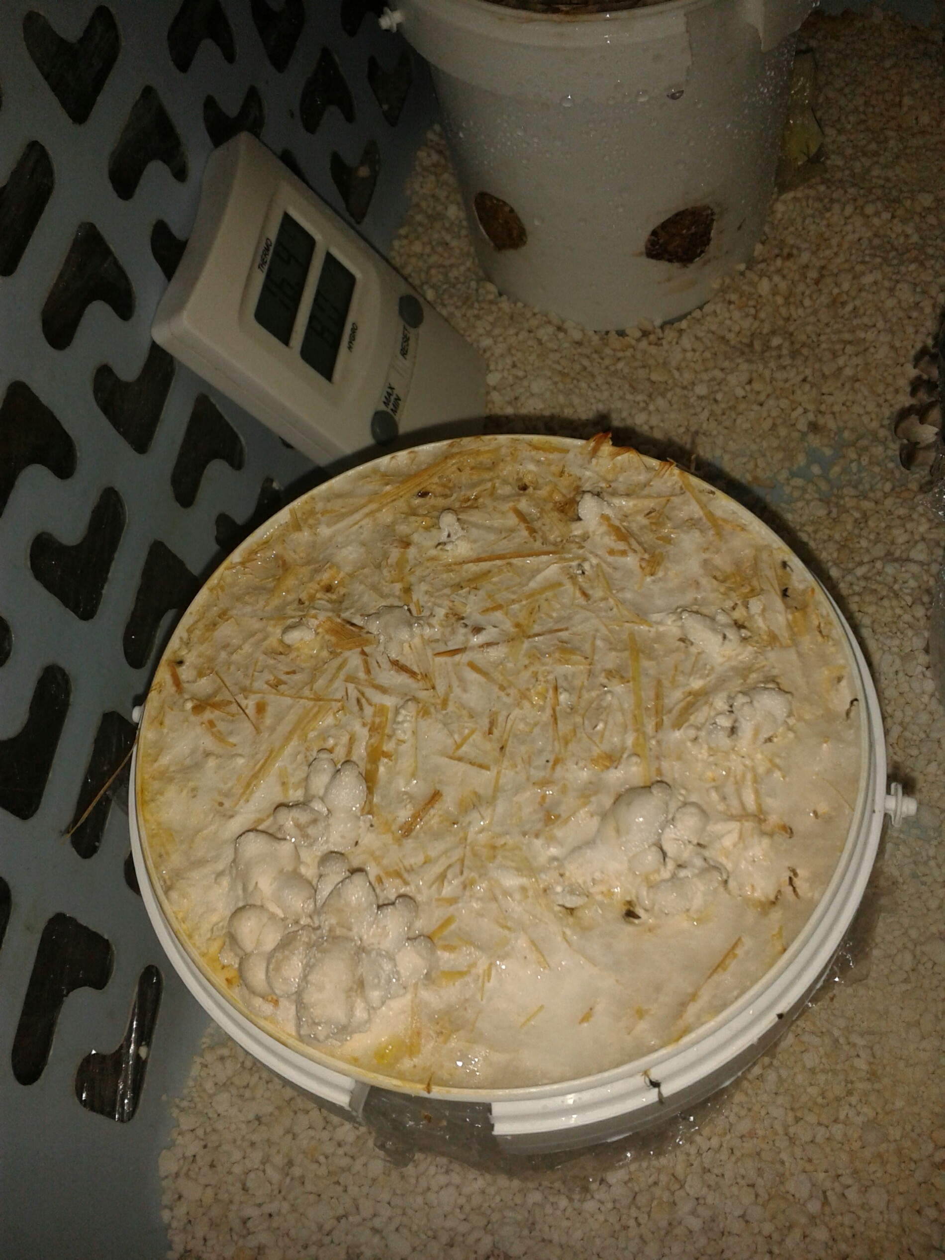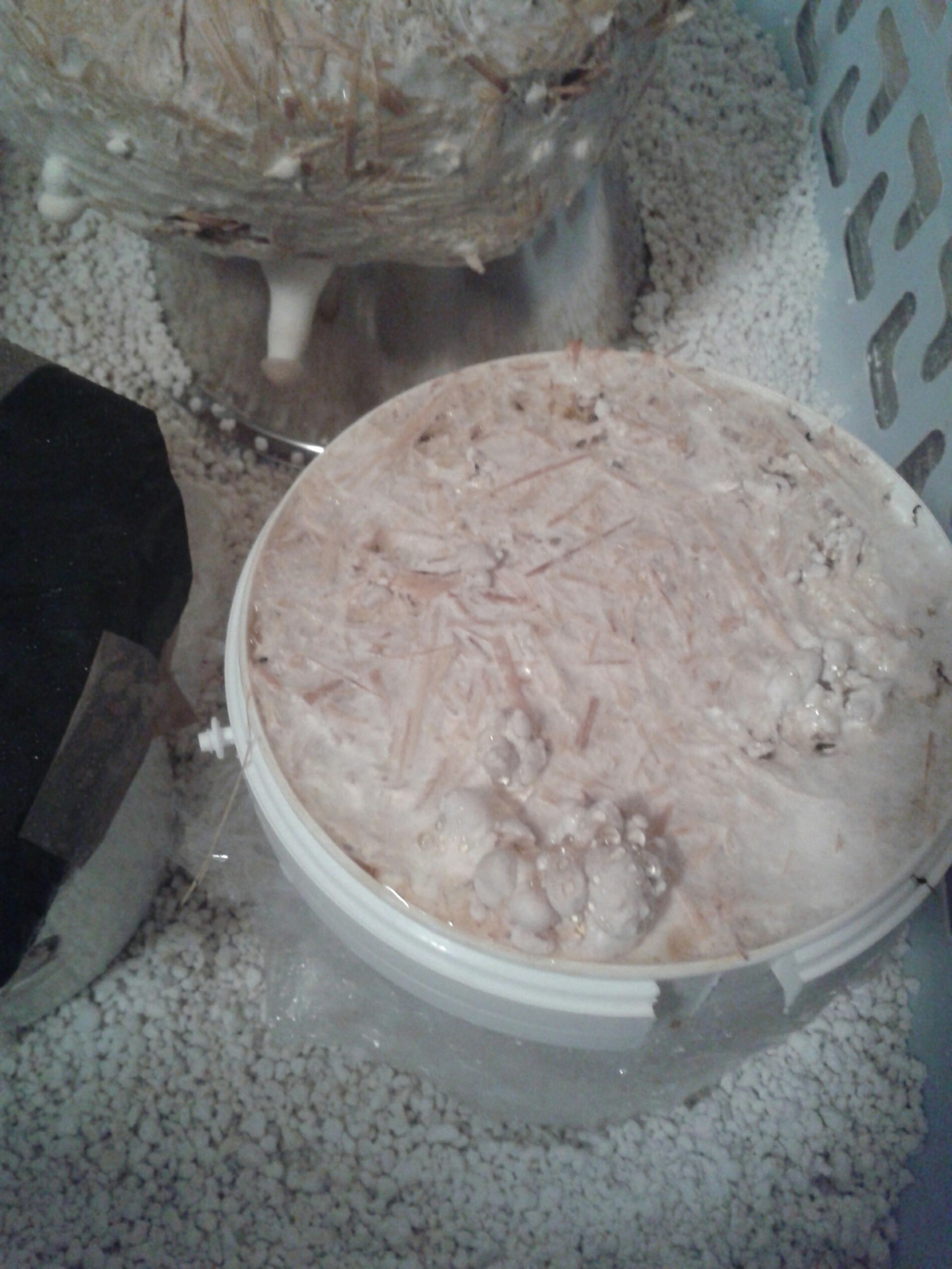 Berichte mir mal bitte wann aus deinen Primordien im weißen Eimer Pilze geworden sind. Die sehen ja ähnlich aus wie meine.