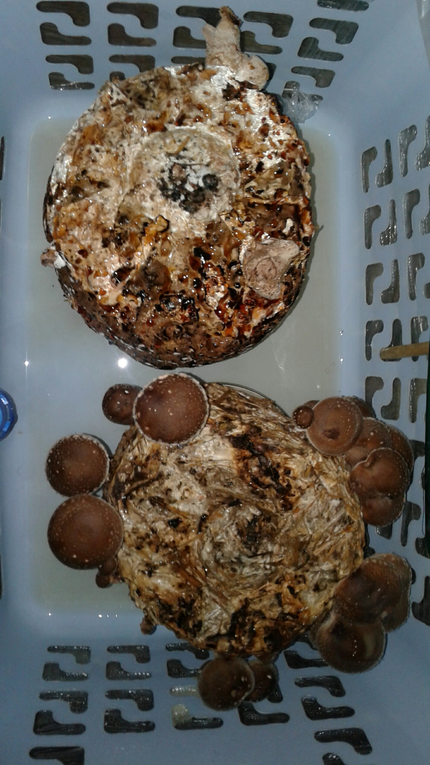 Ich denke aber, dass diese Myzelknoten beim "schöne Pilze Block" während der Durchwachsphase noch nicht aufgetreten waren, weil ich anfang Dezember hier im forum gemeint habe, dass mein shii zu fruchten beginnt. Dachte diese Beulen sind Primos (viewtopic.php?f=64&t=4142). Zu dieser Zeit war der Block bestimmt schon mehr durchwachsen