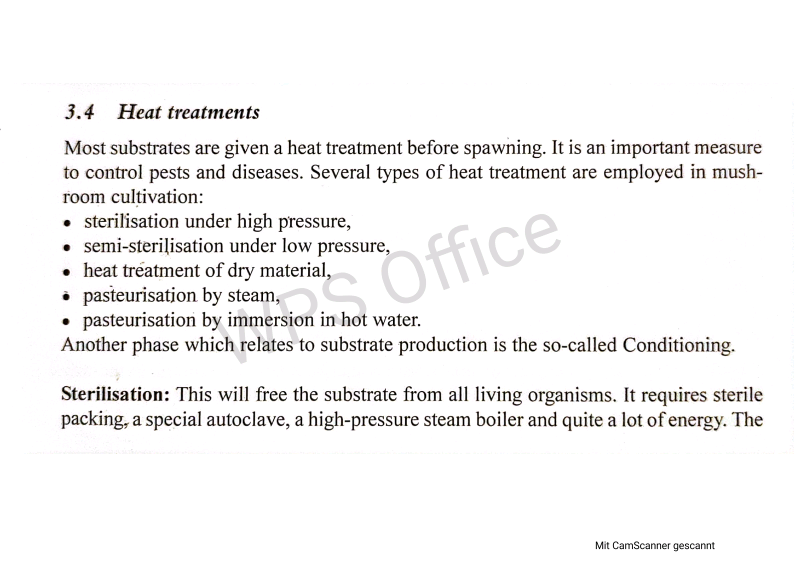 Ich habe nochmal eine Quelle rausgesucht, die was ich meine vielleicht etwas verdeutlicht. Es bezieht sich hier eher auf Stroh-Substrate. Ich hatte immer so die Faustregel, dass Stroh pasteurisiert werden können und Holz-Substrate sterilisiert werden müssen. Ist im großen Erwerbsanbau wohl auch eher die Regel.