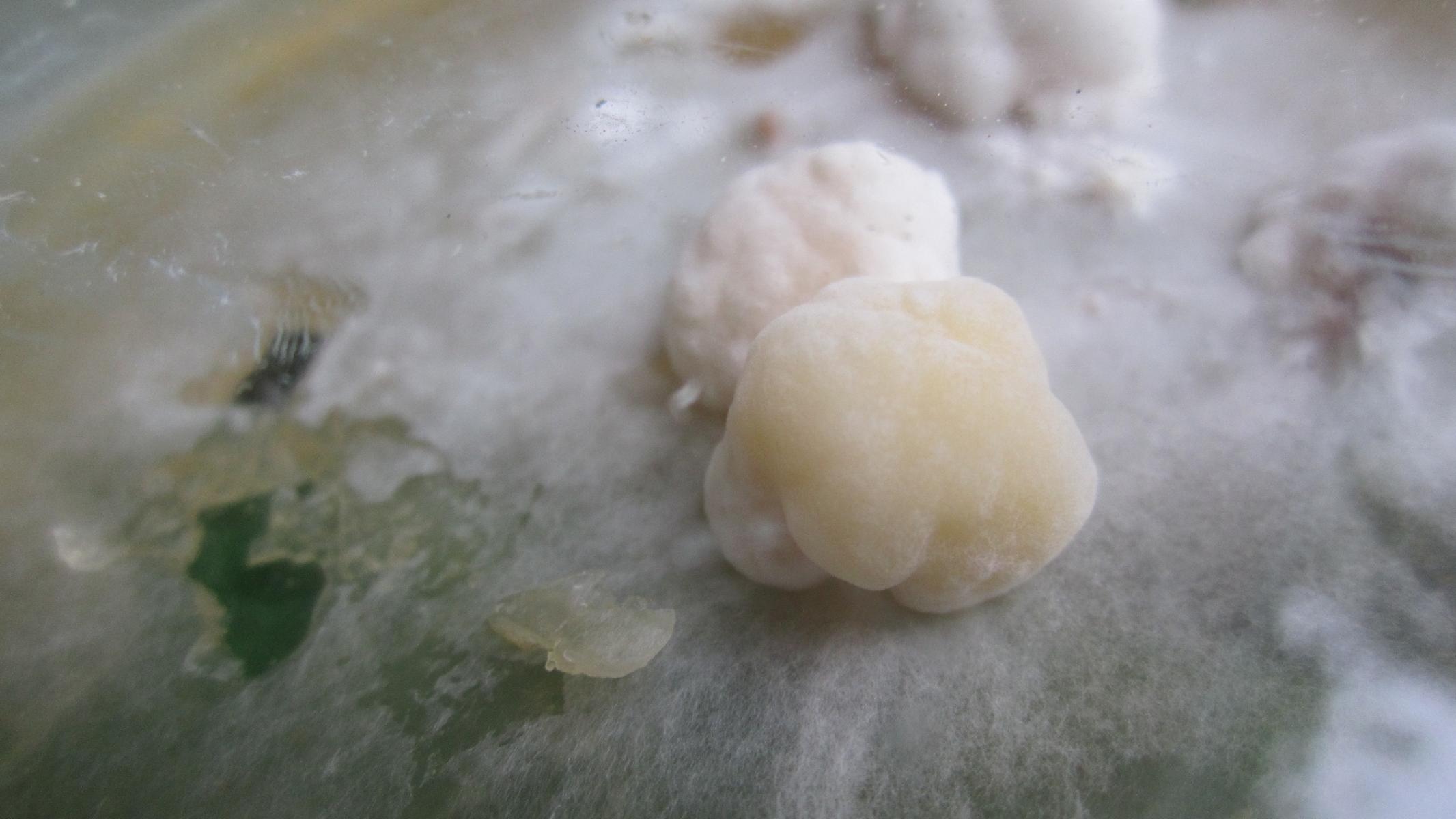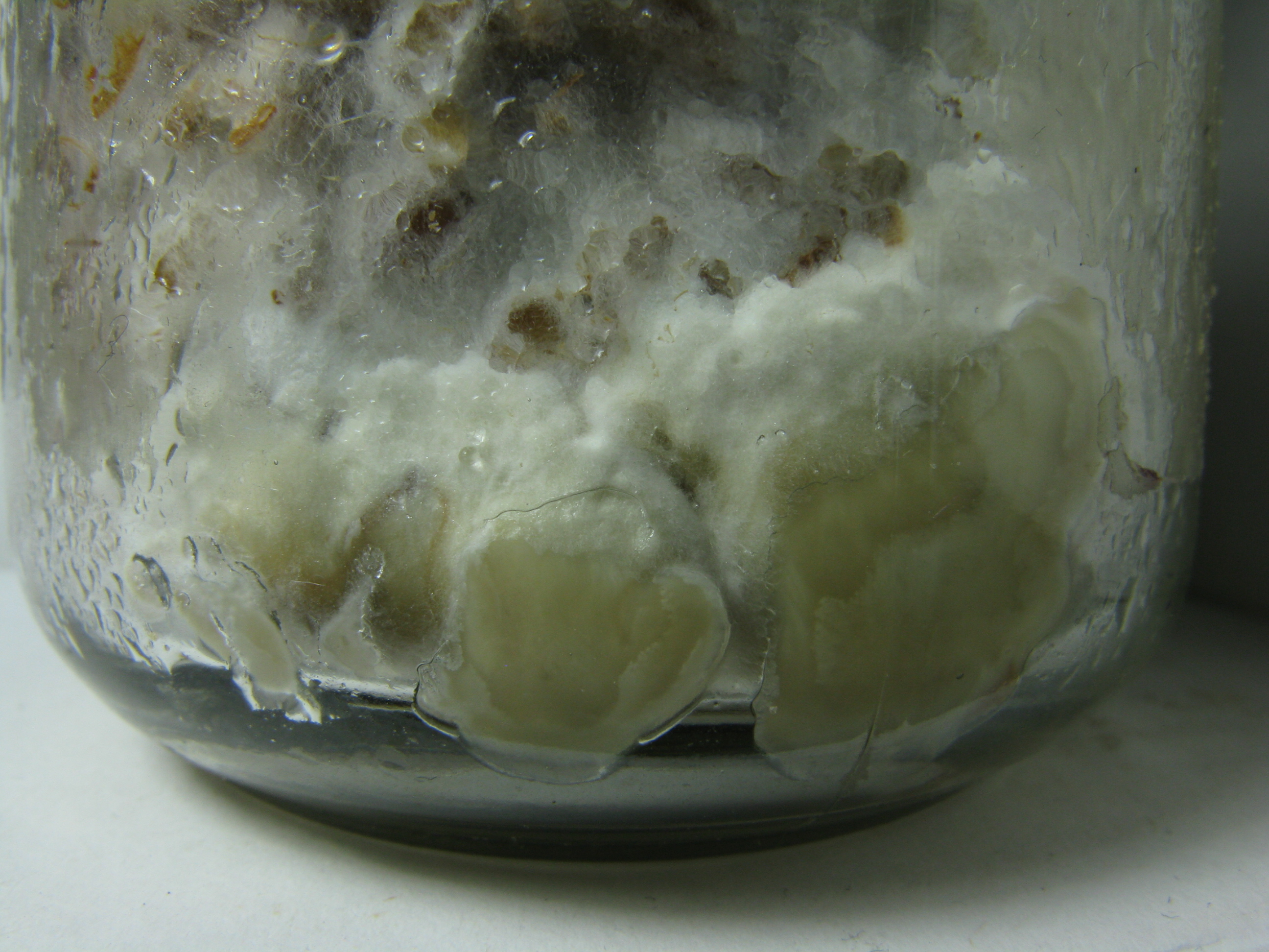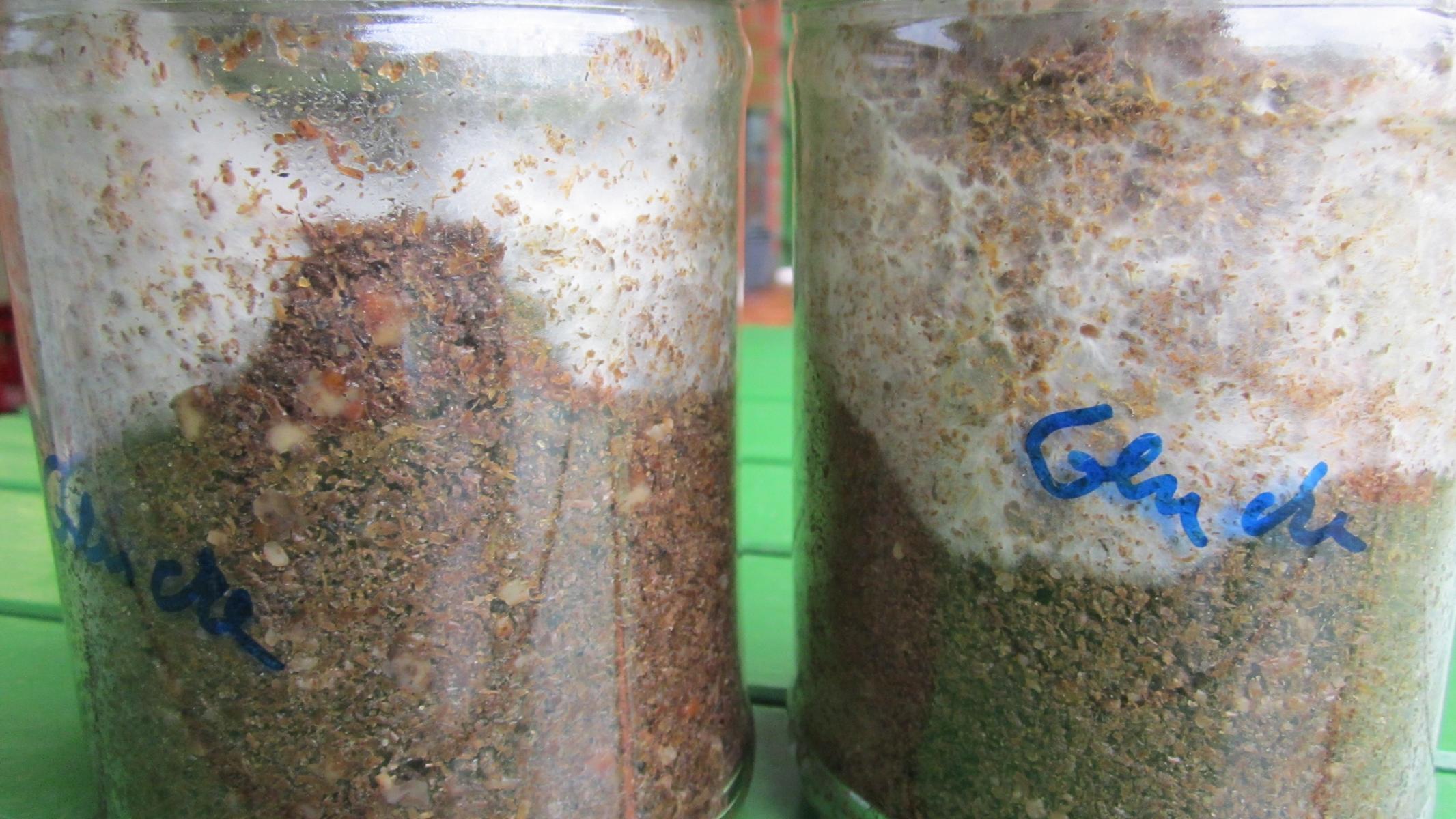 Schau dir einfach mal das Mycel genauer an. Trichoderma hat meist kurze, dichte Hyphen und bildet zuerst diese pelzigen Mycelinseln, während Gluckenhyphen länger und zuerst weniger dicht wachsen.