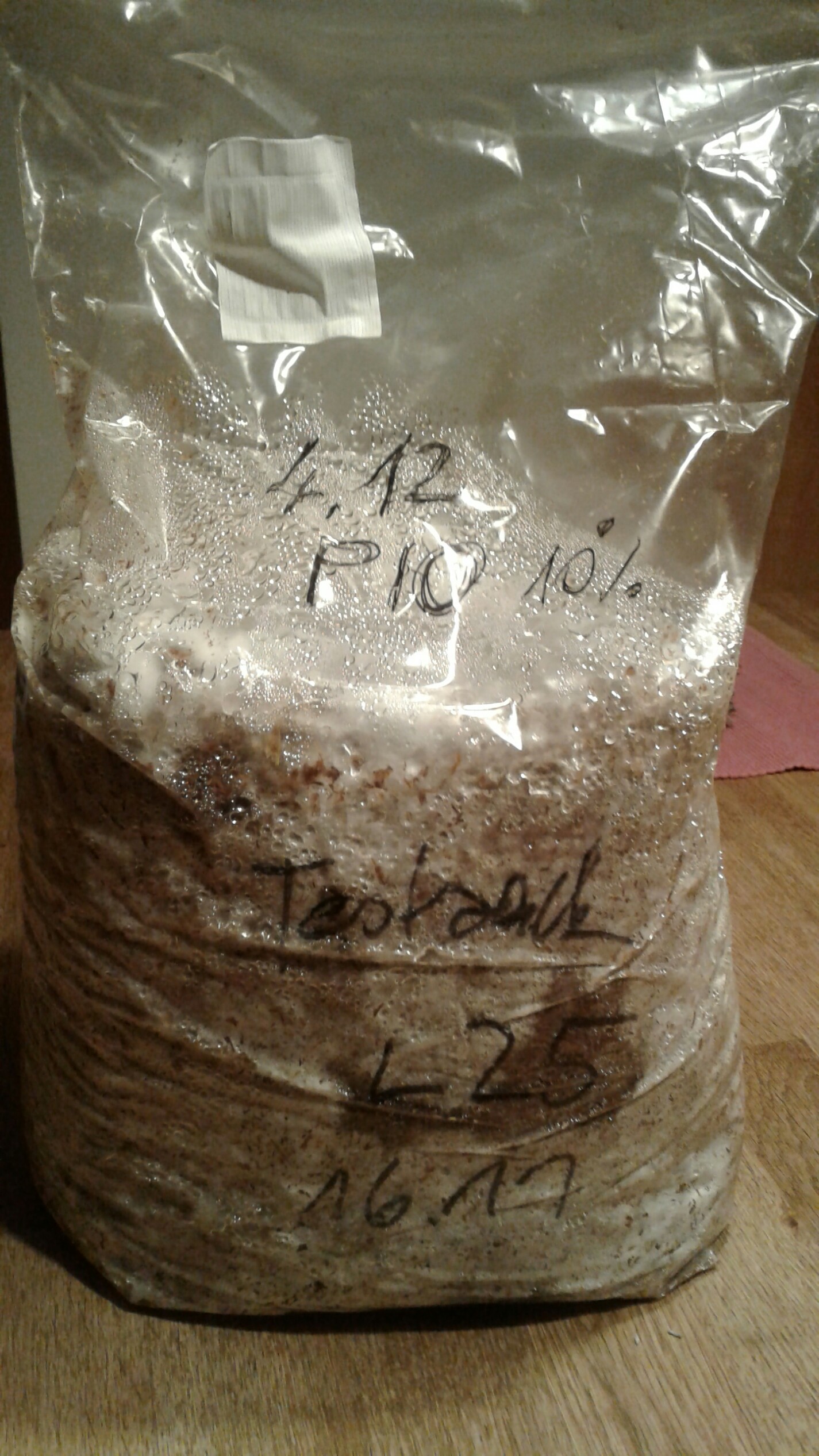 Der Testsack war schon fast durchwachsen (Foto). Jetzt ist er durchlöchert. An 5 verschiedenen Stellen habe ich versucht Bakterien zu entnehmen .... Ohne myzel.