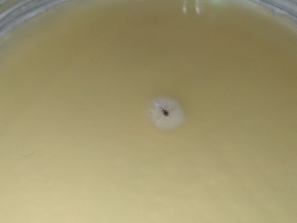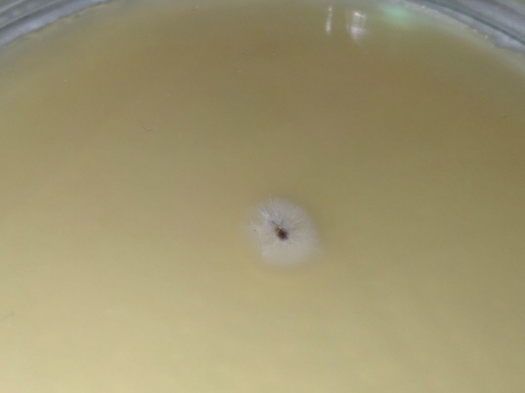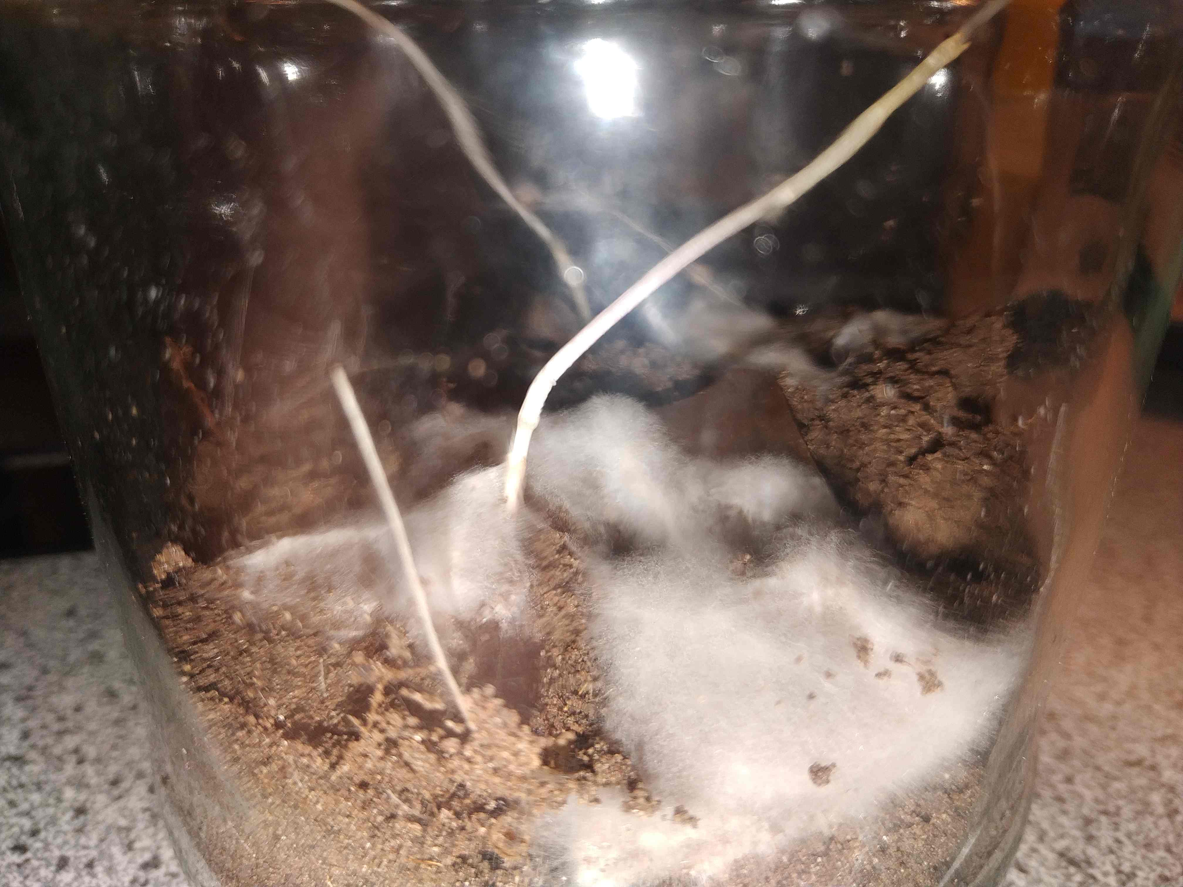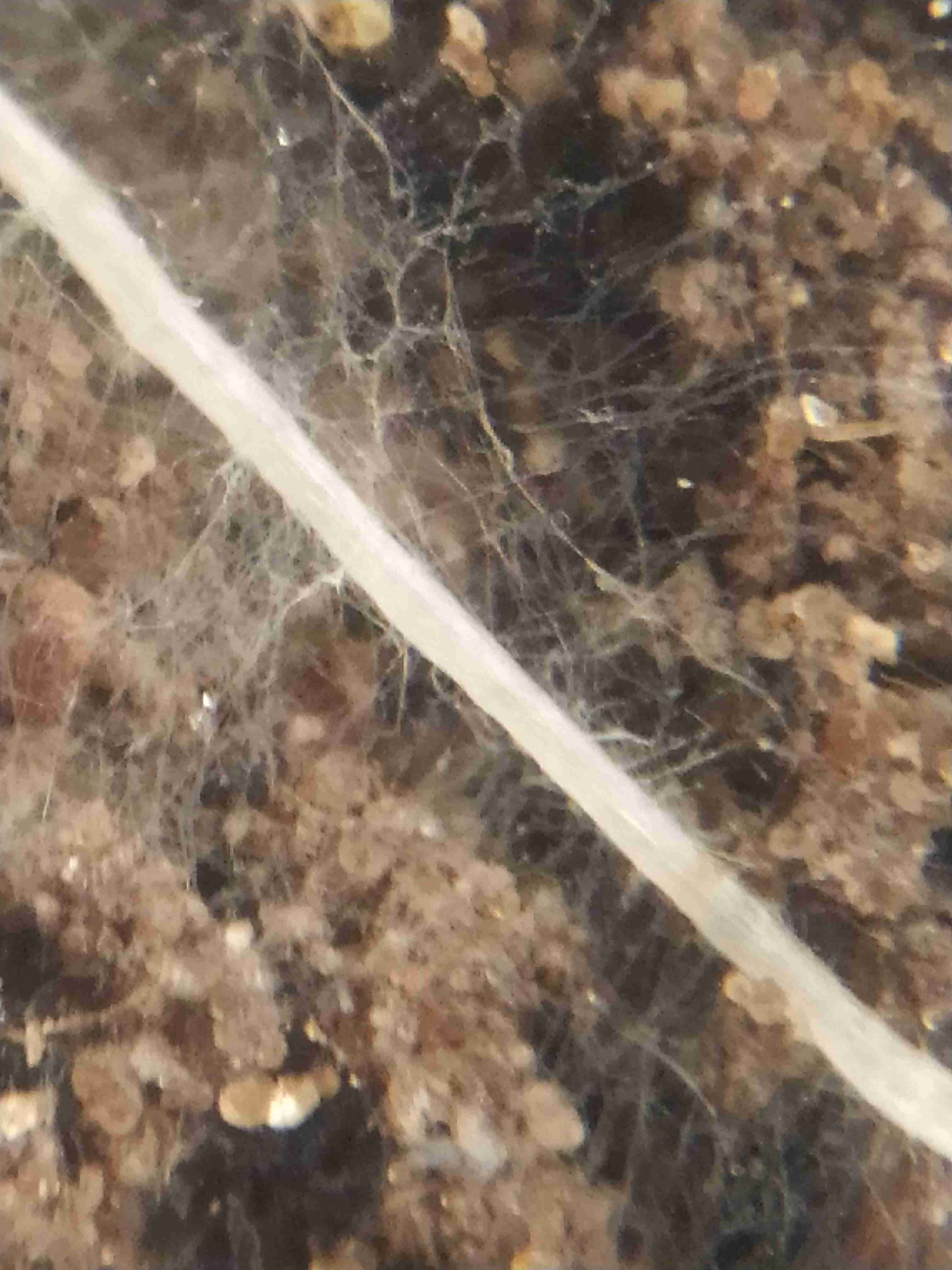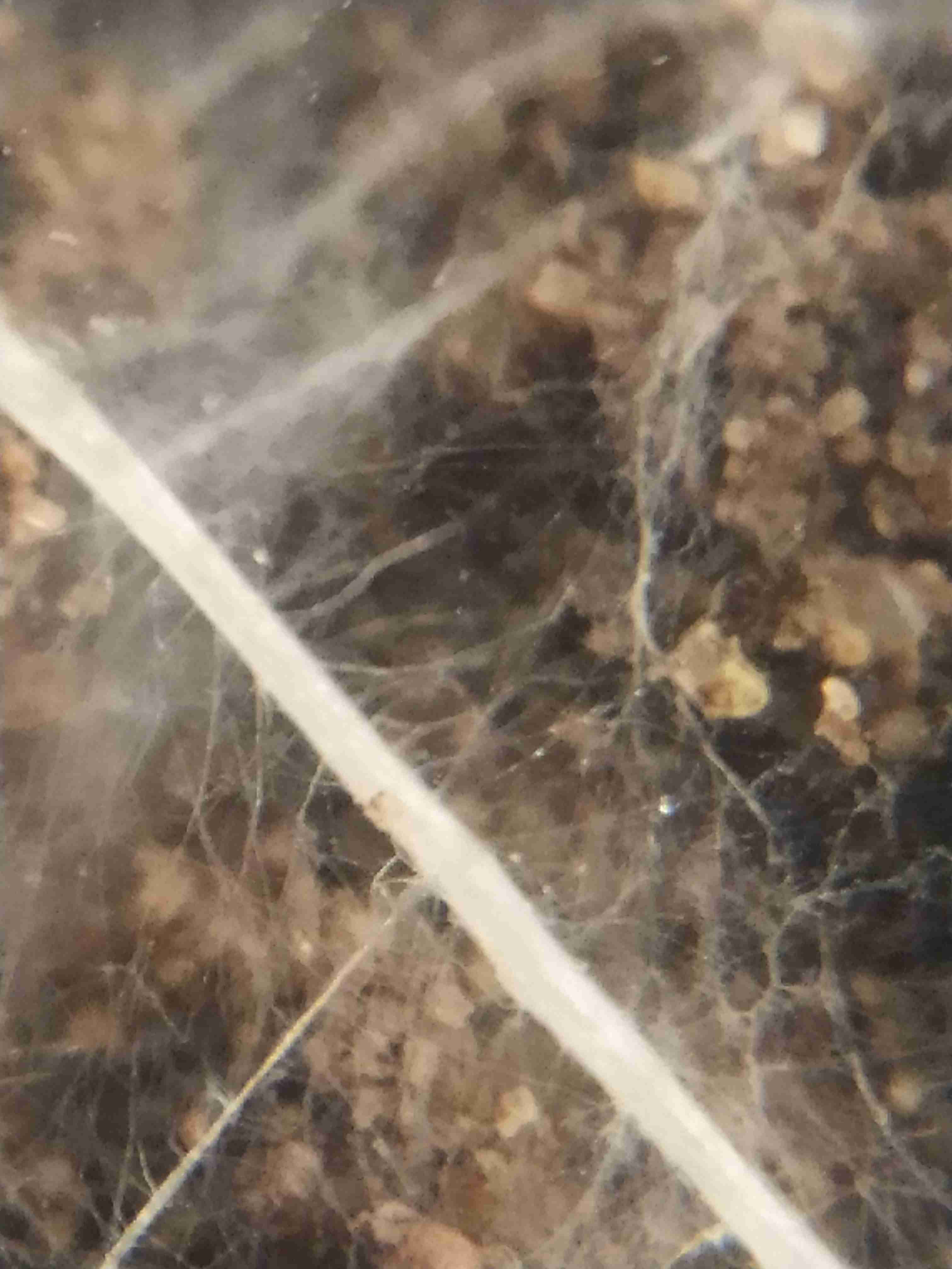 Es kann sich also tatsächlich Myzel/Hyphen ausgehend von dem Agar Stückchen weiter in den Boden vorarbeiten. Natürlich muss man mal abwarten wie sich das alles entwickelt, vielleicht bricht der NS ja morgen zusammen und nächste Woche ist kein Myzel mehr zu erkennen. Glaub ich aber nicht.