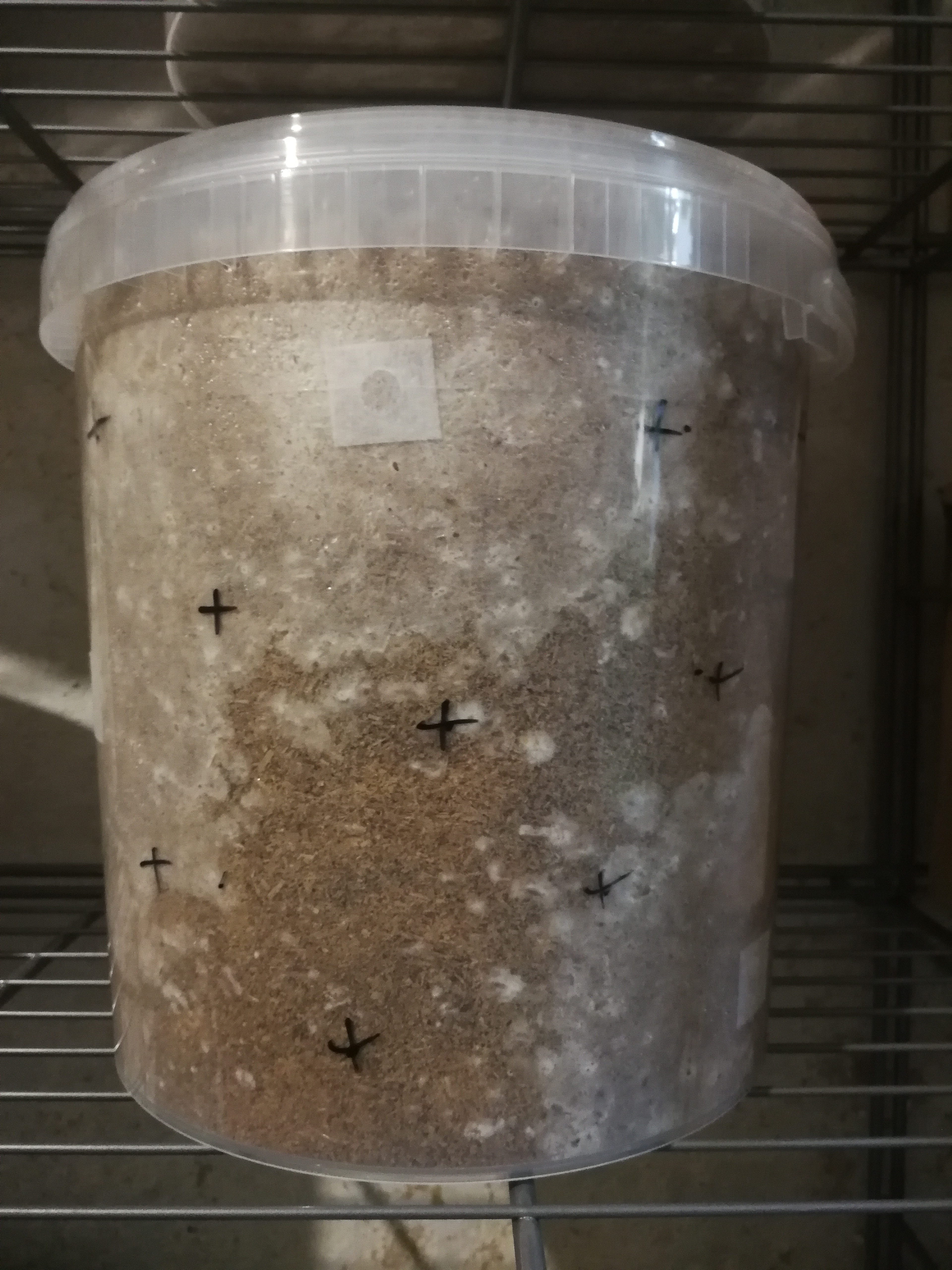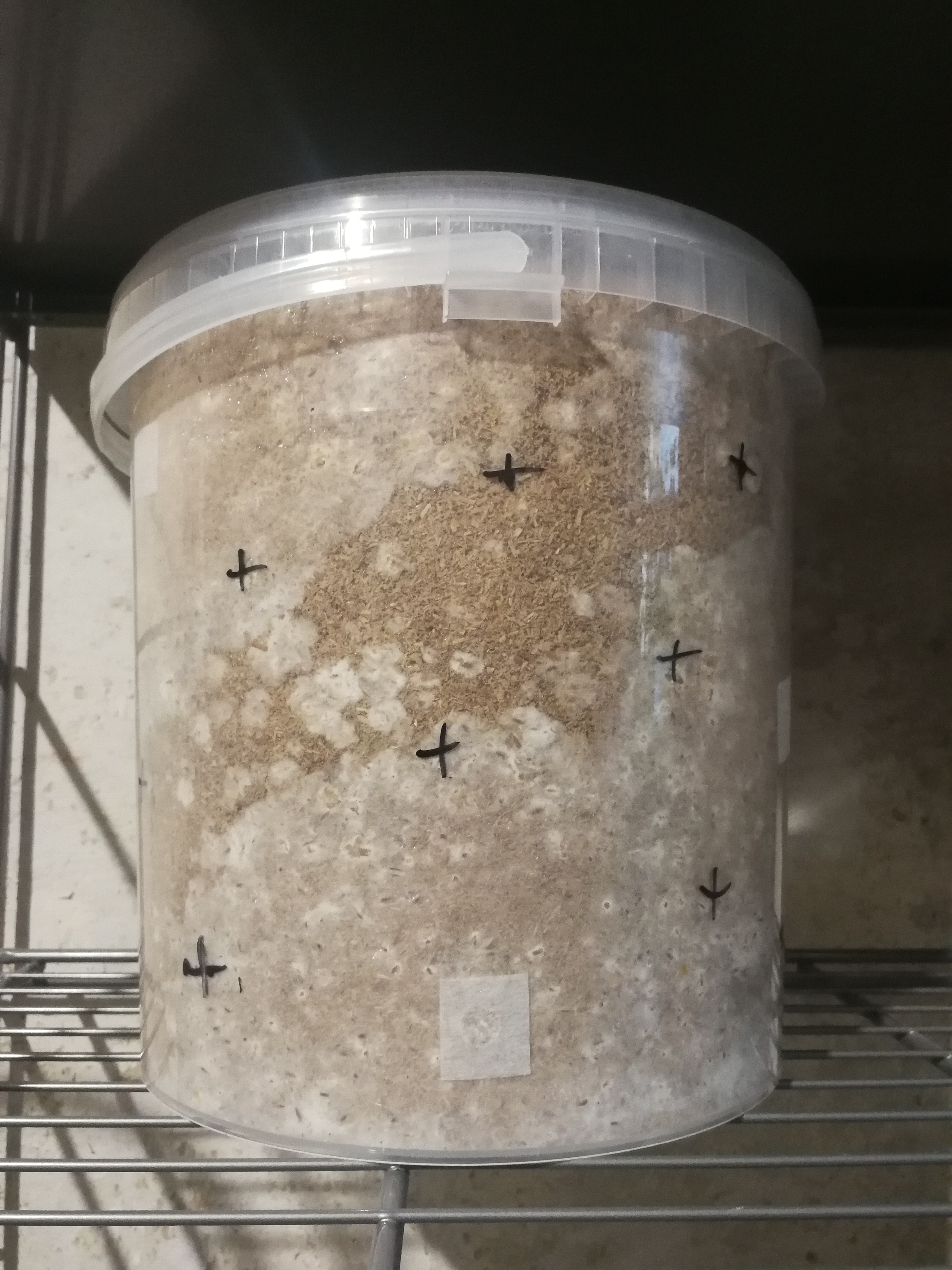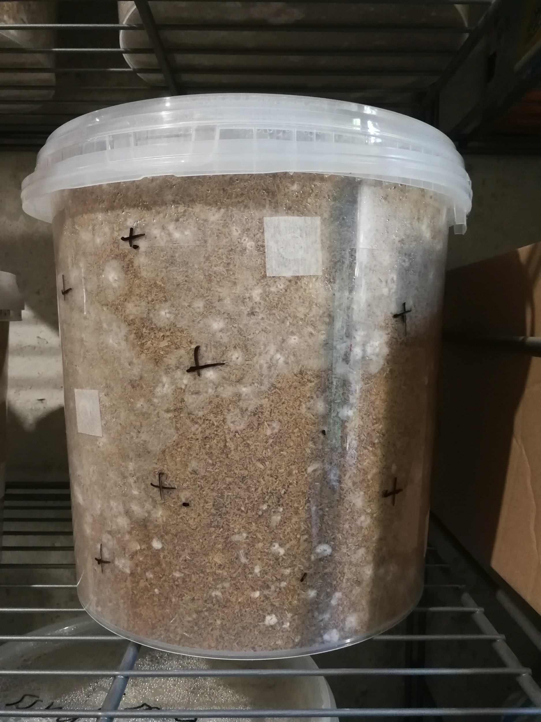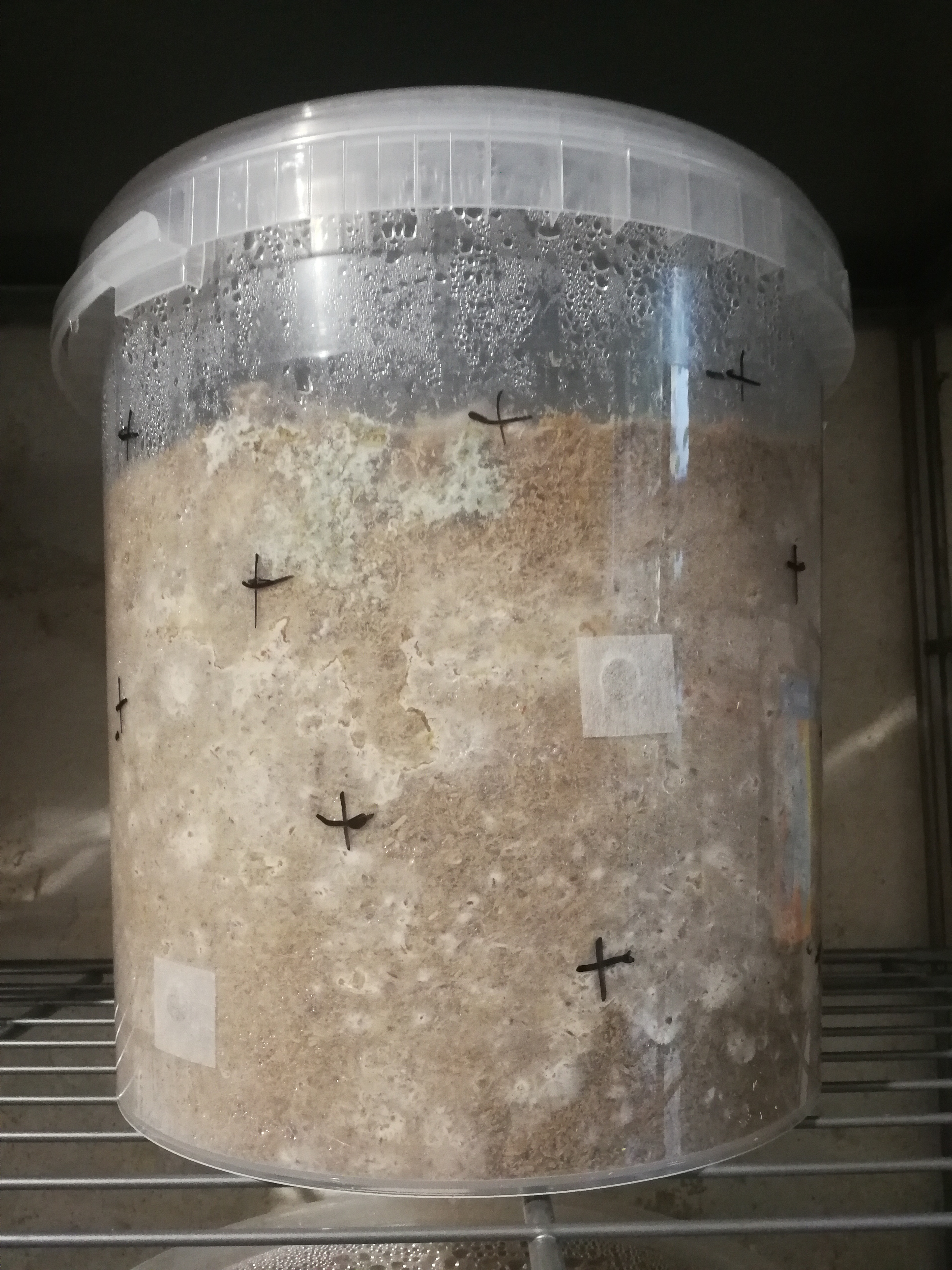 Ich bin gespannt, wie die das Myzel in den bisherigen Eimern auf die Veränderungen reagiert.
