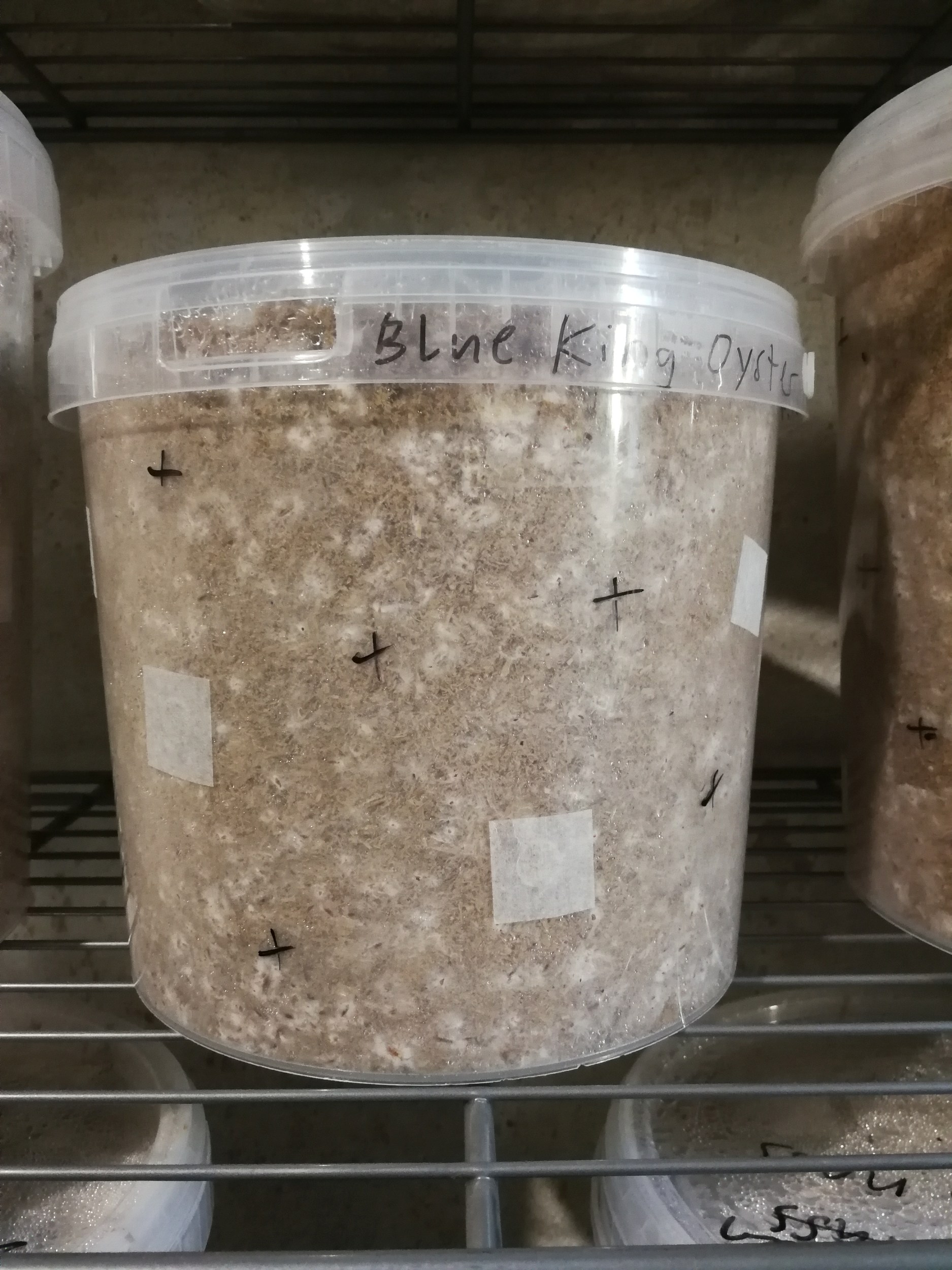 Ich werde jetzt übrigens nicht mehr alle 4 Wochen 4 Eimer gleichzeitig mit Körnerbrut beimpfen, sondern jede Woche einen. Die Körnerbrut werde ich trotzdem auf einen Schlag anfertigen und im Kühlschrank lagern, bis sie verarbeitet wird, was maximal 4 Wochen der Fall sein wird. Ich werde die Eimer mit Datum versehen um sie zuordnen zu können und auch hier so benennen.