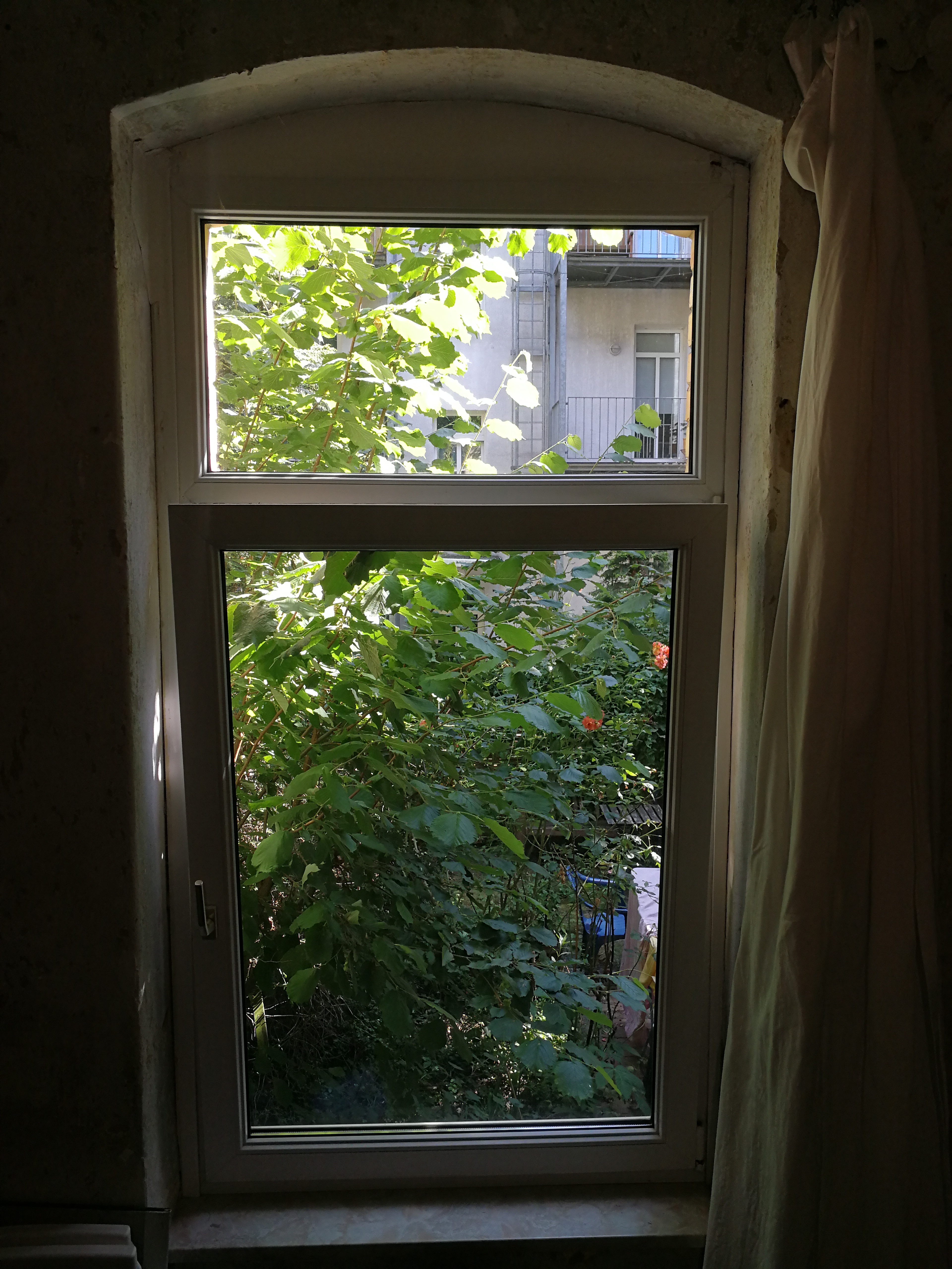 Ich könnte es kippen und die Abluft mit Hilfe eines Aluflexschlauches hinausführen indem ich ihn in den Fensterspalt stecke. Frischluft könnte dann durch die restliche Fläche des offenen Fensterspaltes hineinströmen. Mit Hilfe so eines Adapters könnte ich den offenen Spalt minimieren und hoffen, dass es im Winter nicht zu kalt wird in dem Raum.