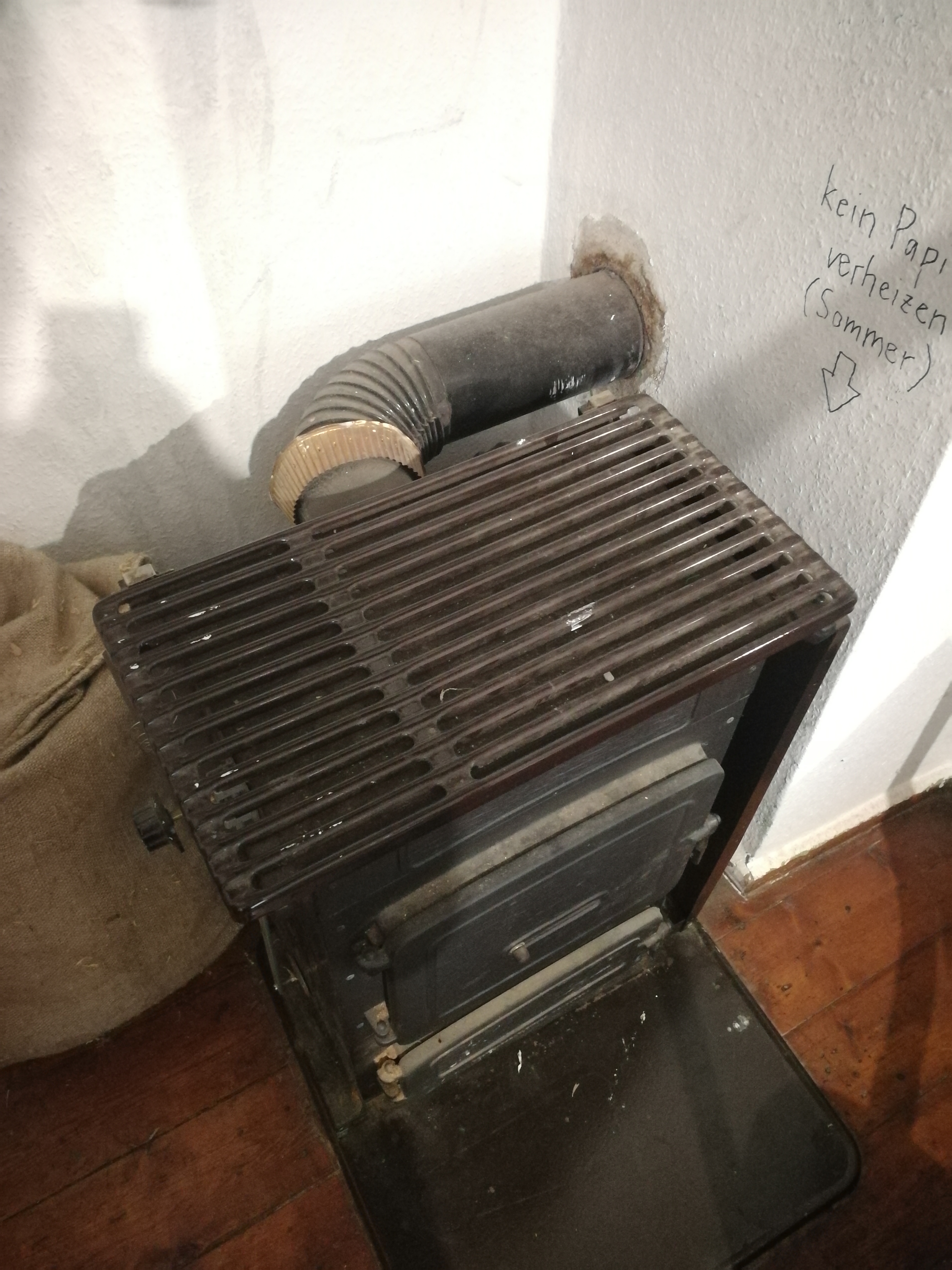 Der Schornstein in meinem Fall ist aktiv in der Heizsaison. Direkt gegenüber im Zimmer nutze ich einen Ofen zum heizen.
