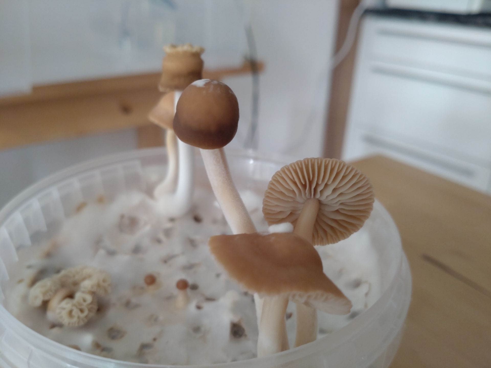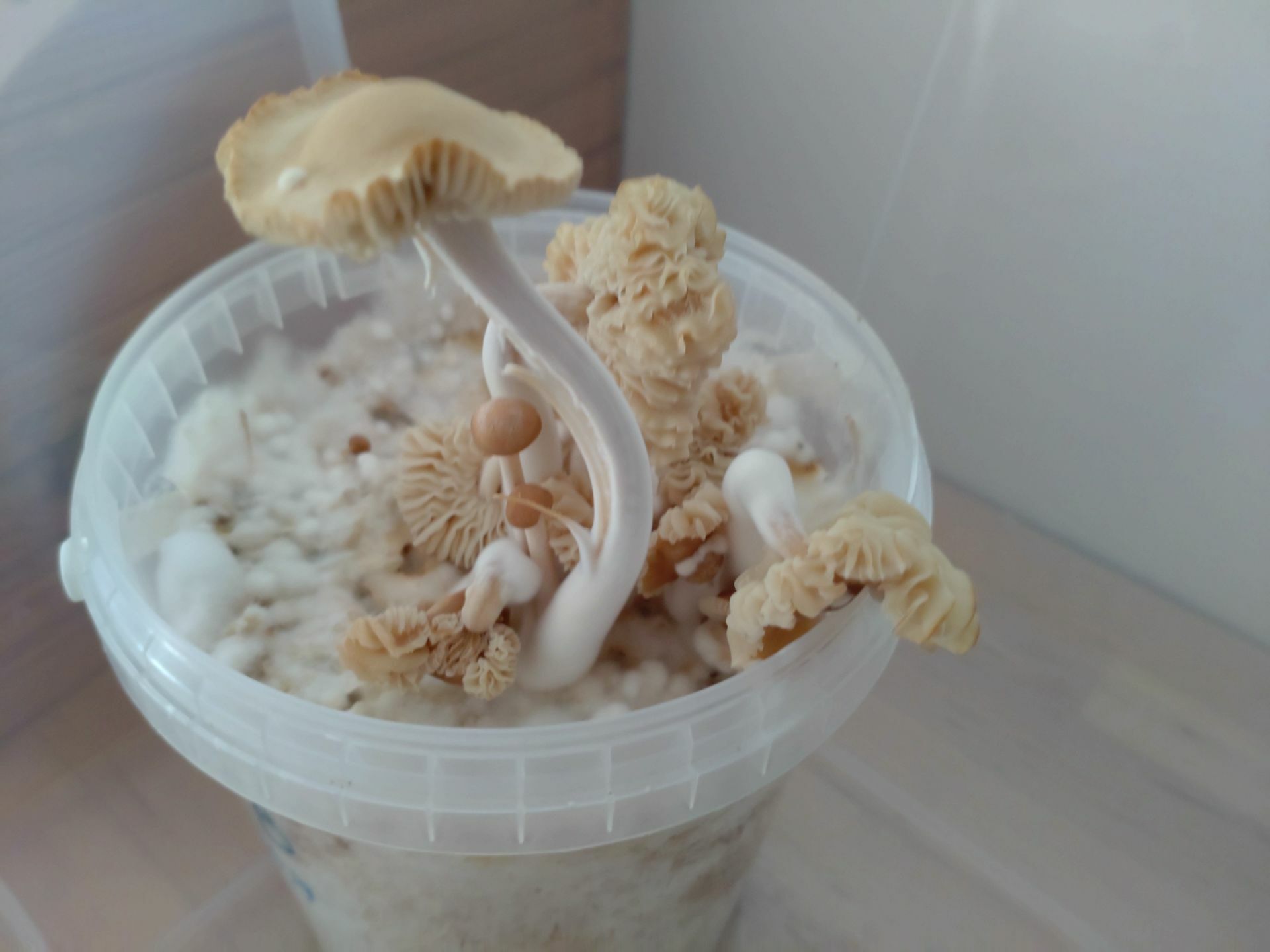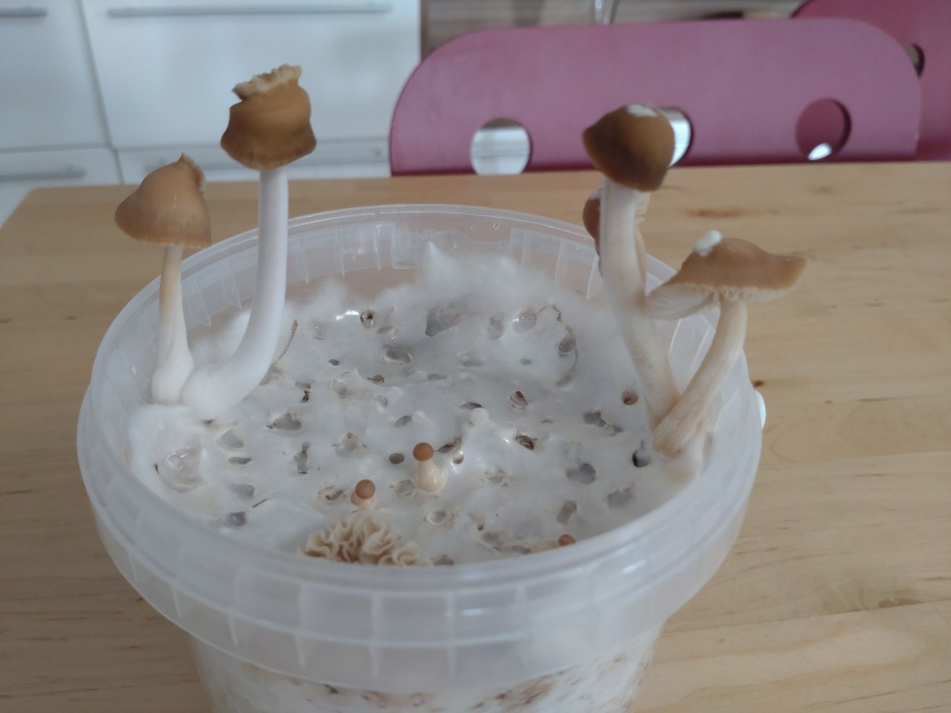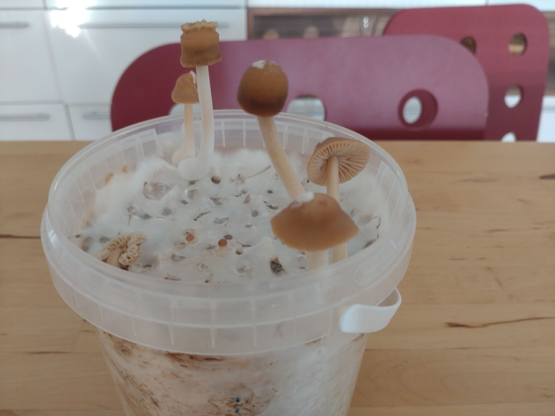 Ich bauch wohl mal eine bessere Lösung als die Plastikbox für Fruktifikation. Das mit CO2 und Feuchtigkeit ist ein bisserl mühsam.