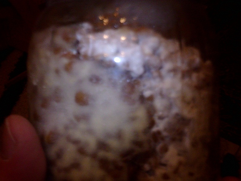 Auf jedemfall ist im diesem Glas der Shiitake sehr schnell am wachsen, hat den Boden schon erreicht, die anderen zwei Gläser haben geradeeinmal ein Drittel geschafft.