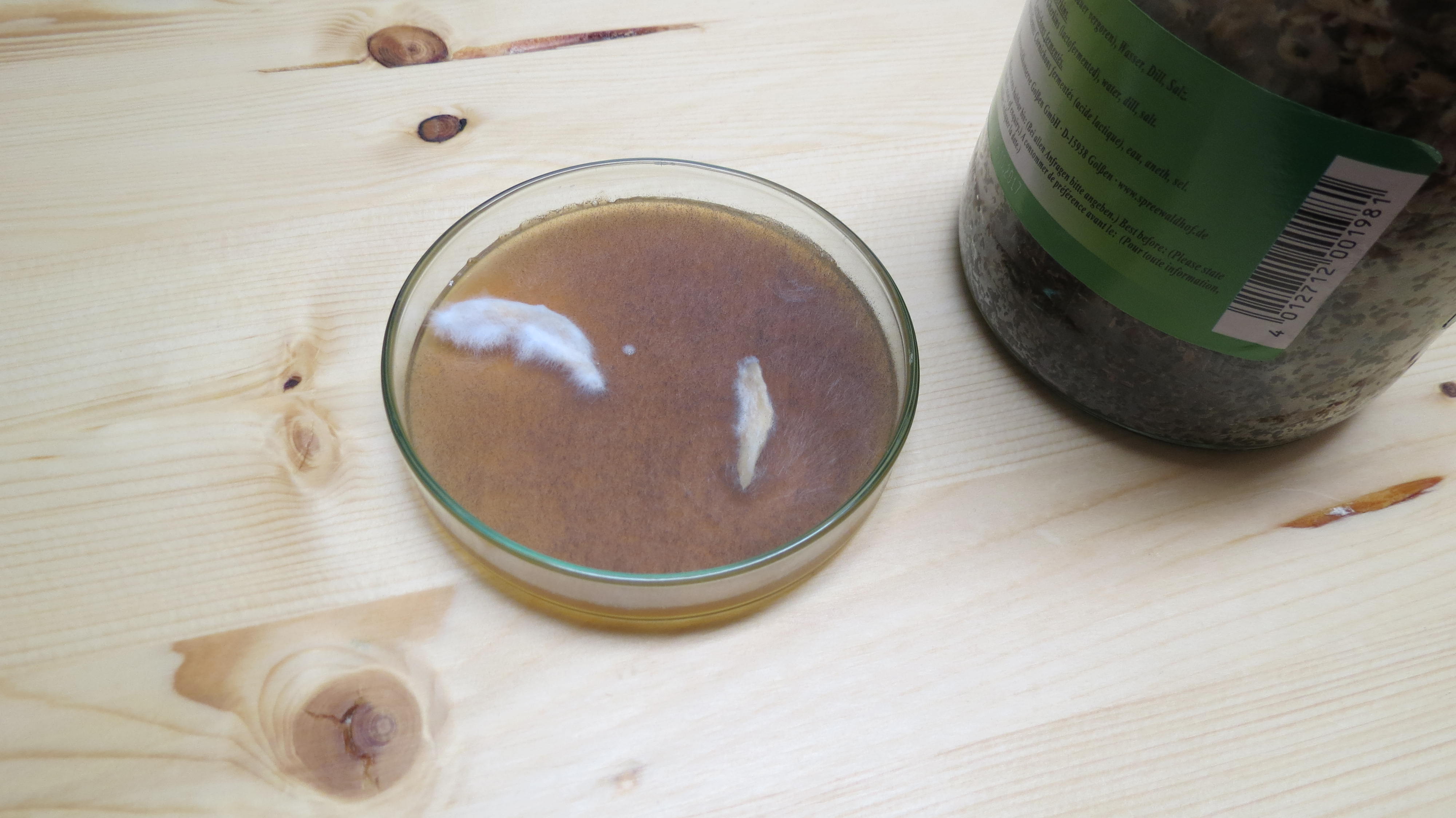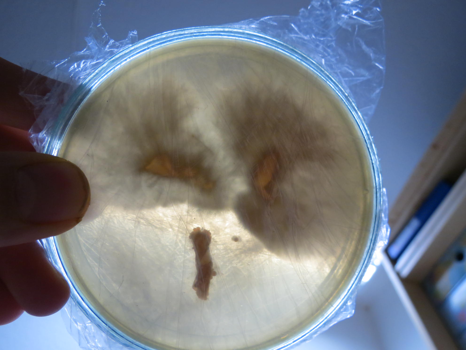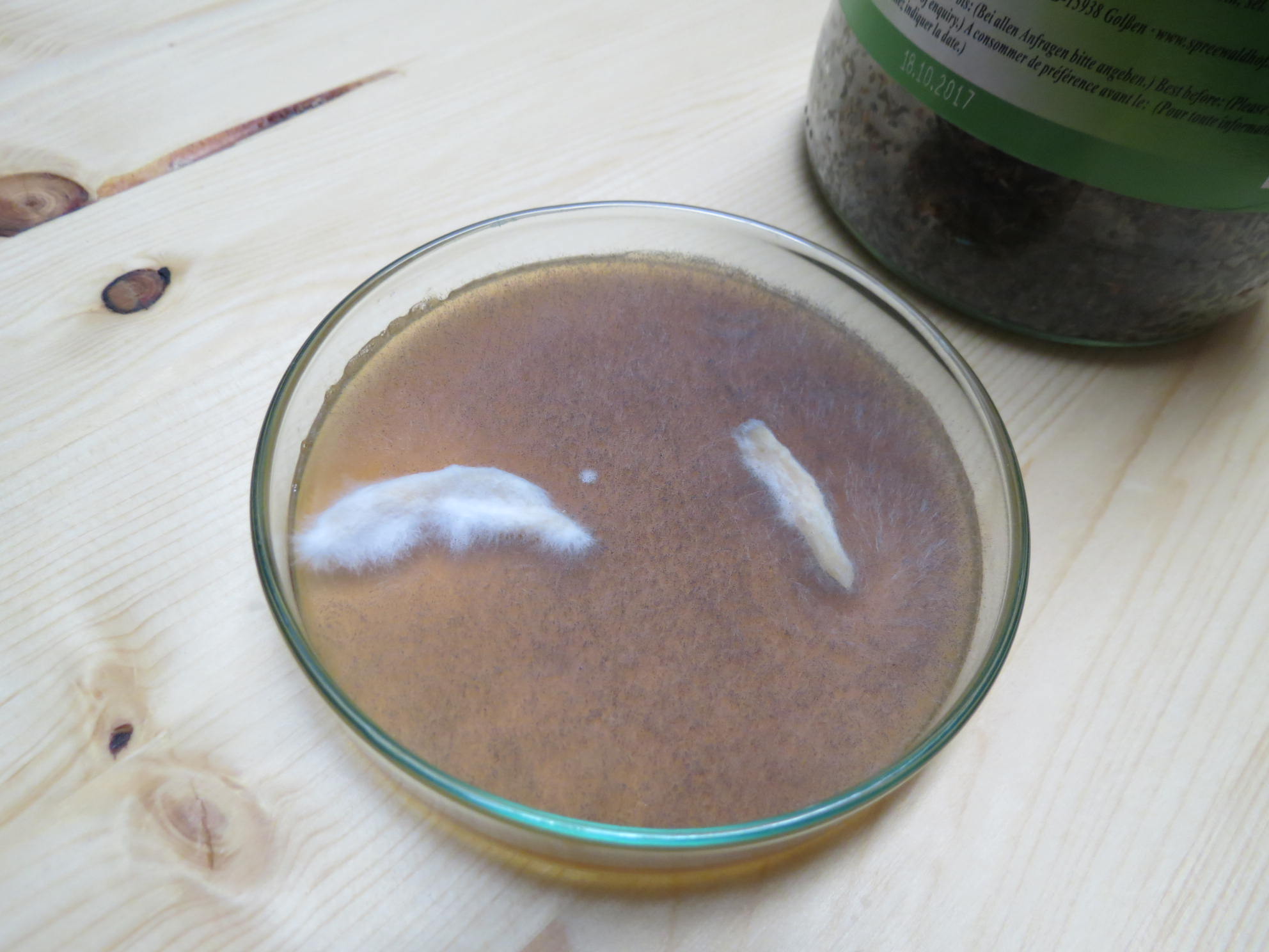 Die Vermehrung des Kräuterseitling in Petrischalen in Agar-Agar-Lösung wirft mir kleine Rätsel auf.