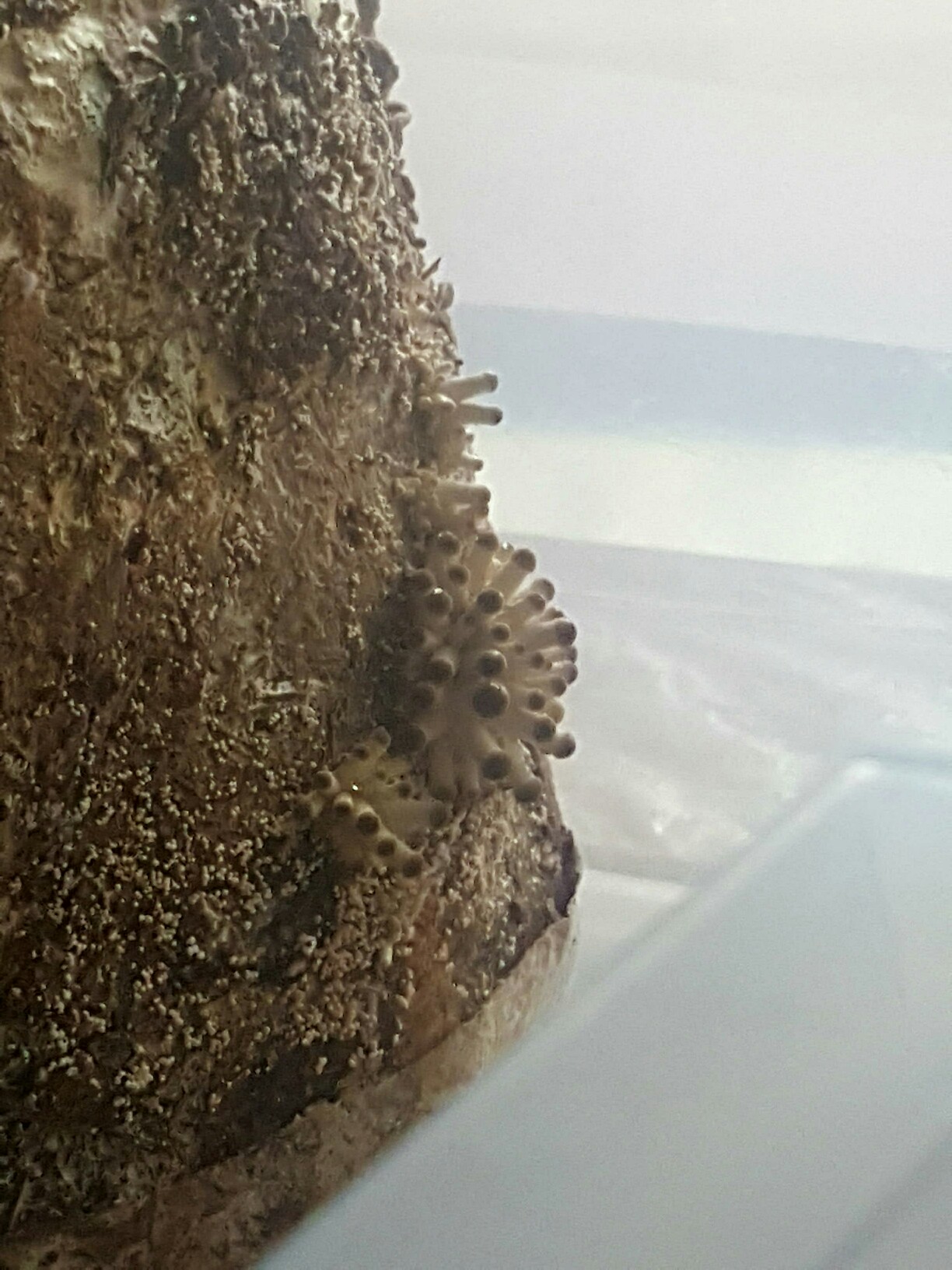 An dem Substratblock erscheint gerade, während der Ruhephase zwischen den Wellen (so hoffe ich), Grau, oder Grünschimmel (Noch nicht klar erkennbar).