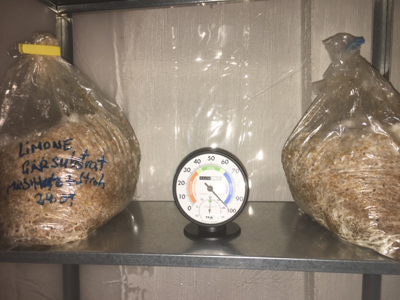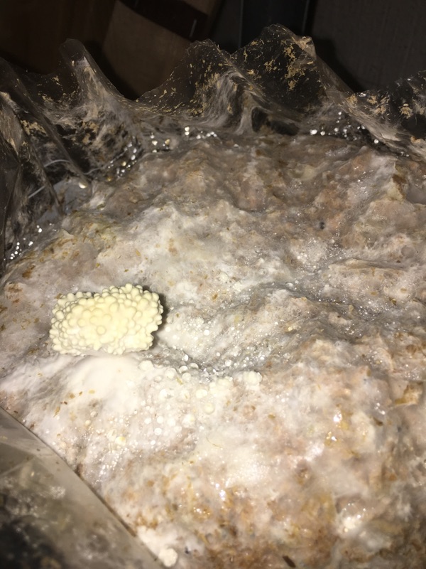 Ich bin so richtig happy. Nach 2 (!) Wochen, nachdem ich die beiden Substratsäcke geimpft habe, haben sich die ersten Primos gebildet. Ich bin absolut erstaunt mit welcher Geschwindigkeit das Myzel die Substrate besiedelt hat. Und jetzt fruchten diese sogar schon. Meine erste Zitronenseitlinge. Ich bin gespannt, ob das Licht und der Luftanteil ausreichend sind.