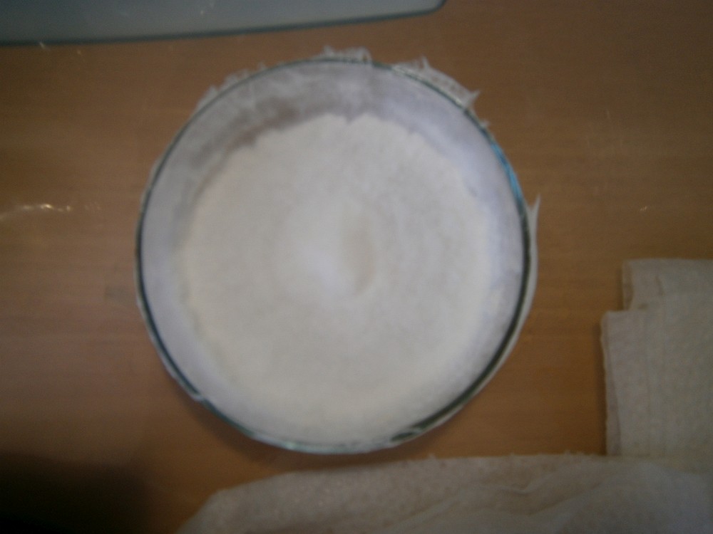 - ca. 20g Agar wurden in 300ml lauwarmen Wasser eingerührt und die Lösung/Suspension in kochende Nährlösung eingerührt