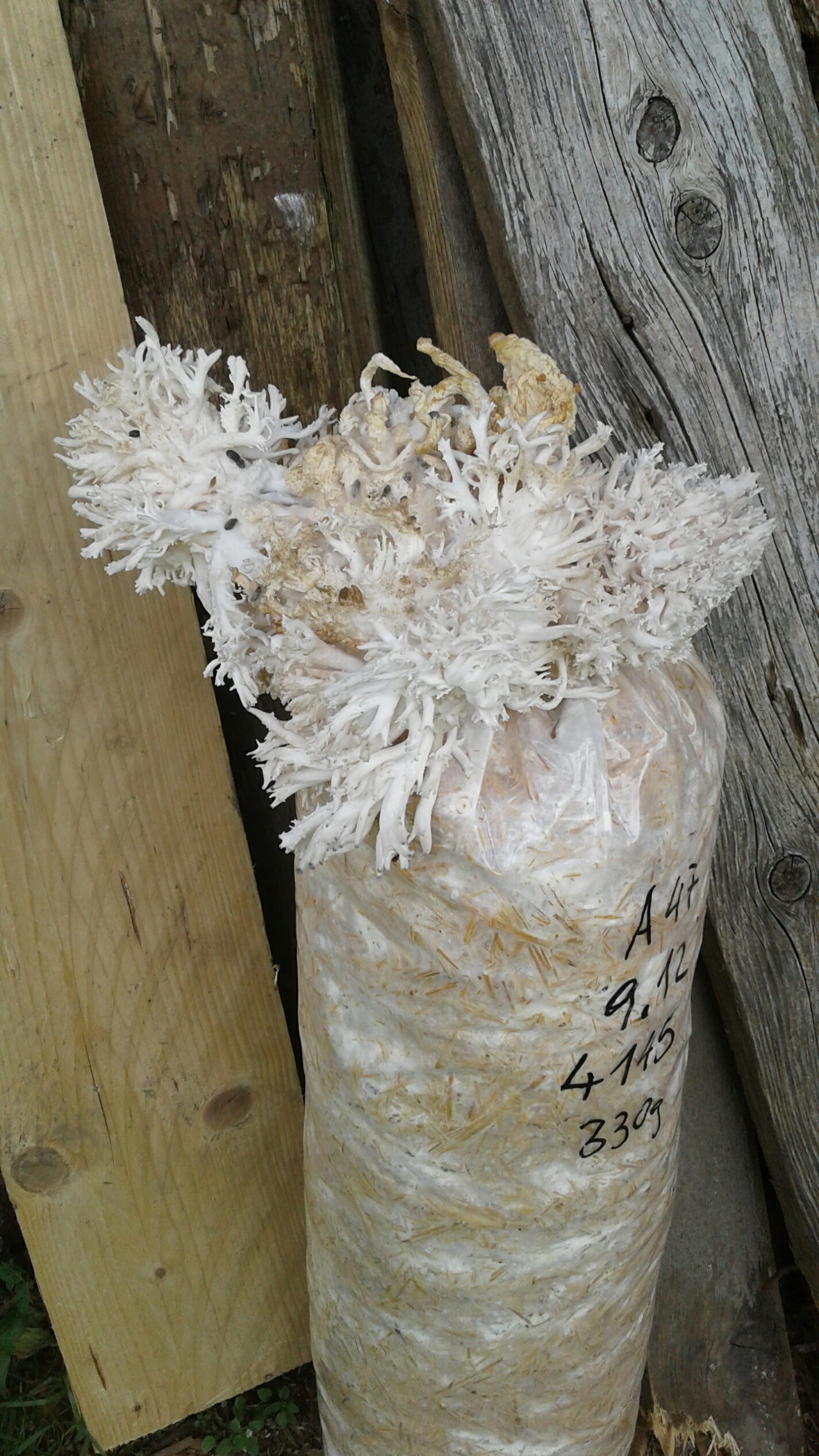 Dann wurde es leider zu kalt. Bei durchwachsthemperatur den über den Winter stehen lassen wäre gar nicht gut. Irgendwann würde das Myzel gelb werden und absterben. Also habe ich den Block im Stall/Garage zugedeckt gelagert.