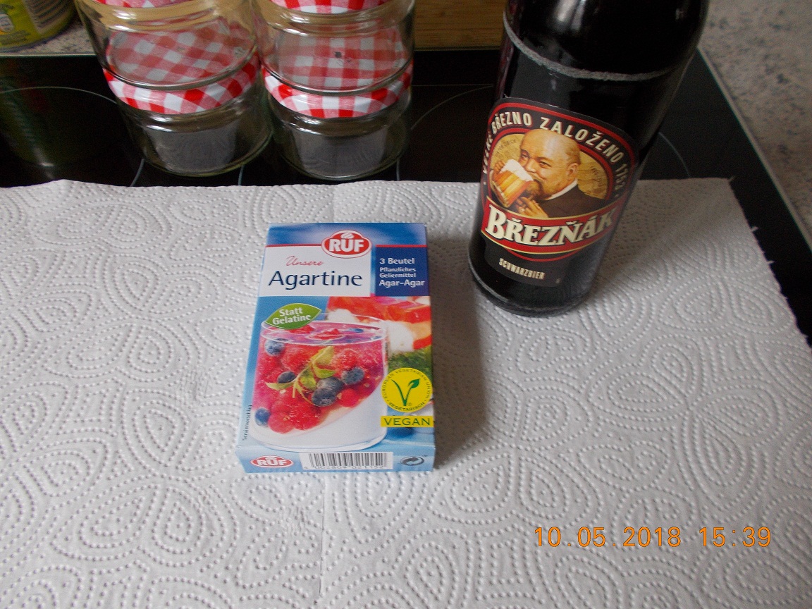 nun kommt unsere Agartine ( Agar Agar ) dazu bei 0.5L Bier so 20g also 2 Tüten