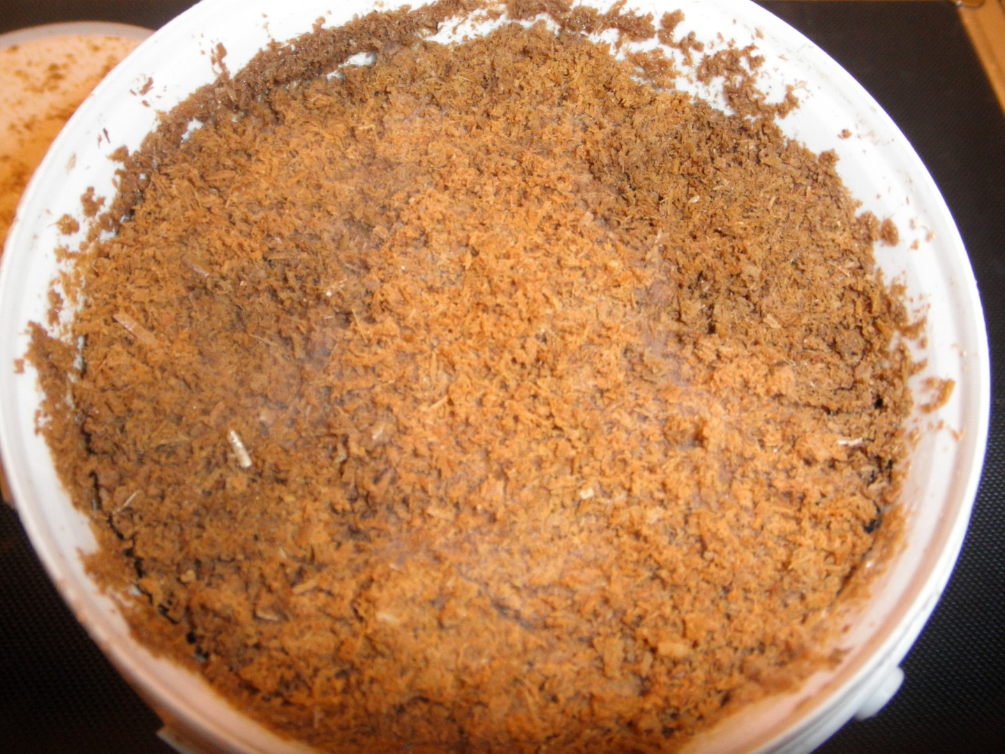 Ein paar alte Dübel ... ich vermute, die Mühe hättest du dir sparen können. Du brauchst frische Brut. Und die sollte man auch nicht zu sparsam verwenden. Es dürfen ruhig mehr als nur ein paar Körner pro Eimer sein.