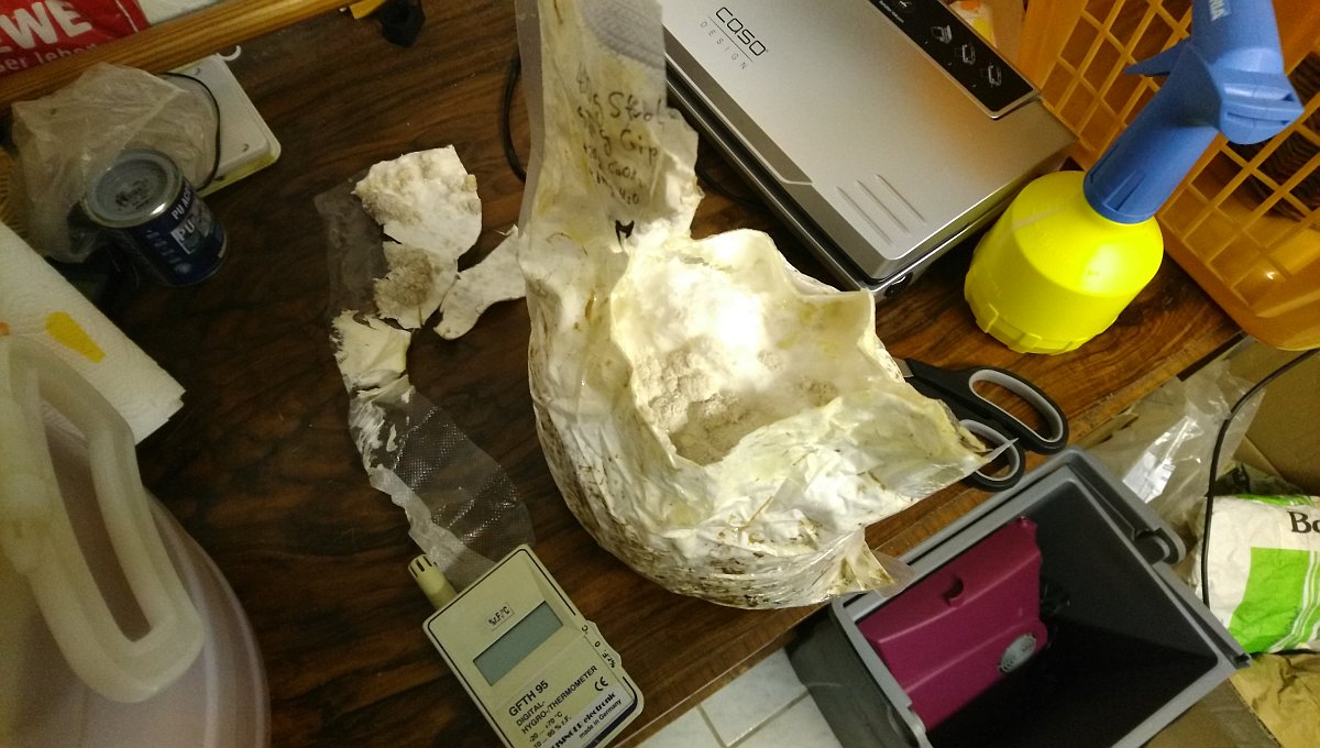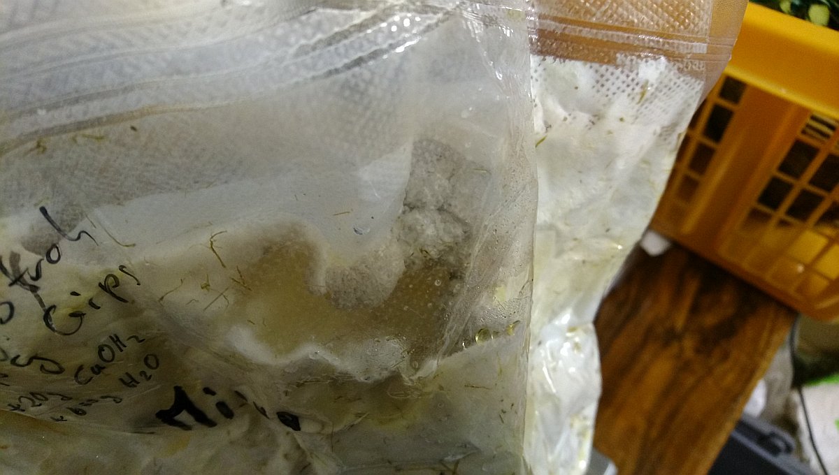 So, habe die Beutel vorhin Massakriert. Hab die Primordien obendran abgeschnitten. Untendrunter am Block zum Teil weitere Primordien. Vermutlich habe ich mir damit etwas an Ertrag geraubt, meinte aber es sei die beste Lösung...
