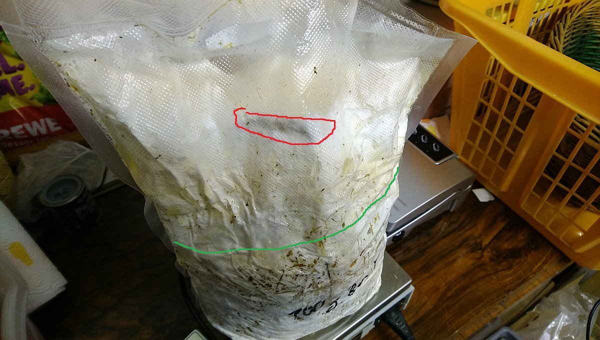 Ich pack die Säcke immer leicht angedrückt mit den Strohpellets, also das nach oben hin kein leerer Raum ensteht. So ist dann nach meiner Methode auch mal oben auf, ne Cluster die gut wird.