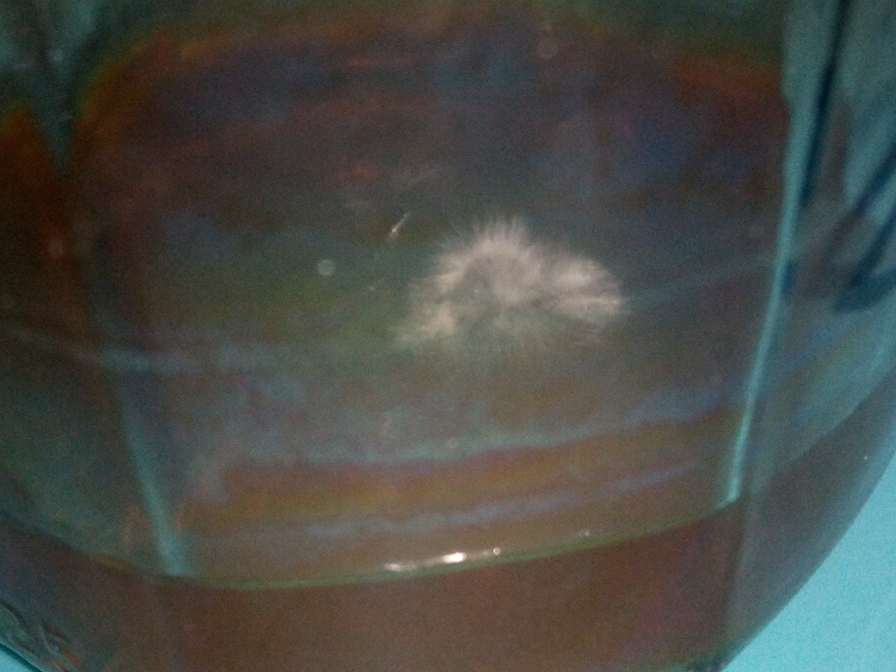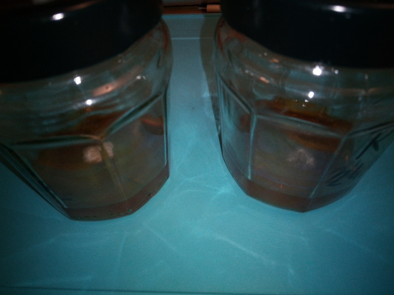 Oder bewundere ich hier einen Schimmelpilz? :-) Ich hab zwei Gläser gemacht - der eine sieht gut aus für meinen laienhaften Blick. Noch ein Gesamtfoto für's Größenverhältnis..