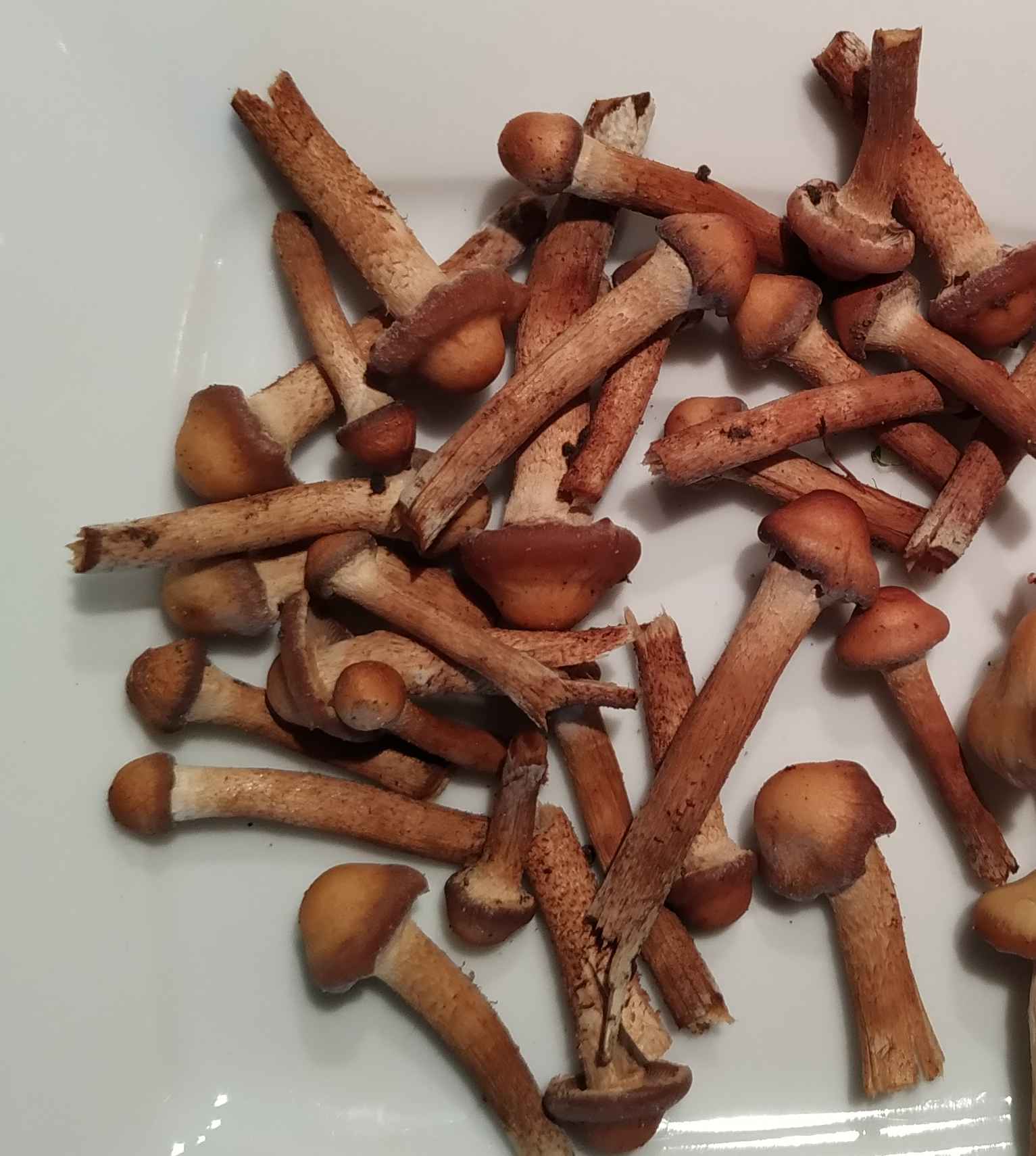 die Pilze sind jetzt nicht die schönsten. Das waren die, die noch am Block waren (Rest schon gegessen). . Und sie standen zu trocken.
