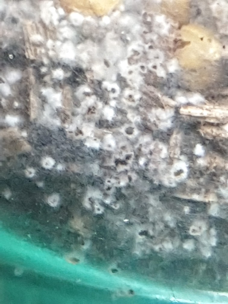 An solche weißen Knötchen im Substrat kann ich mich nicht wirklich erinnern, aber diese Gebilde an der Glaswand kommen mir sehr bekannt vor, wenngleich sie bei mir deutlich heller sind. An der Oberfläche bilden sich nach gewisser Zeit eigentlich immer Knubbel (mal größer, mal kleiner), die manchmal auch bizzar aussehen, aber an solch gleichmäßig stacheligen Gebilde kann ich mich nicht erinnern. Auch wenn diese gleichmäßig stacheligen Gebilde seltsam sind, denke ich das Du eine Glucke im Glas hast. Was hast Du denn als Substrat? Steril?