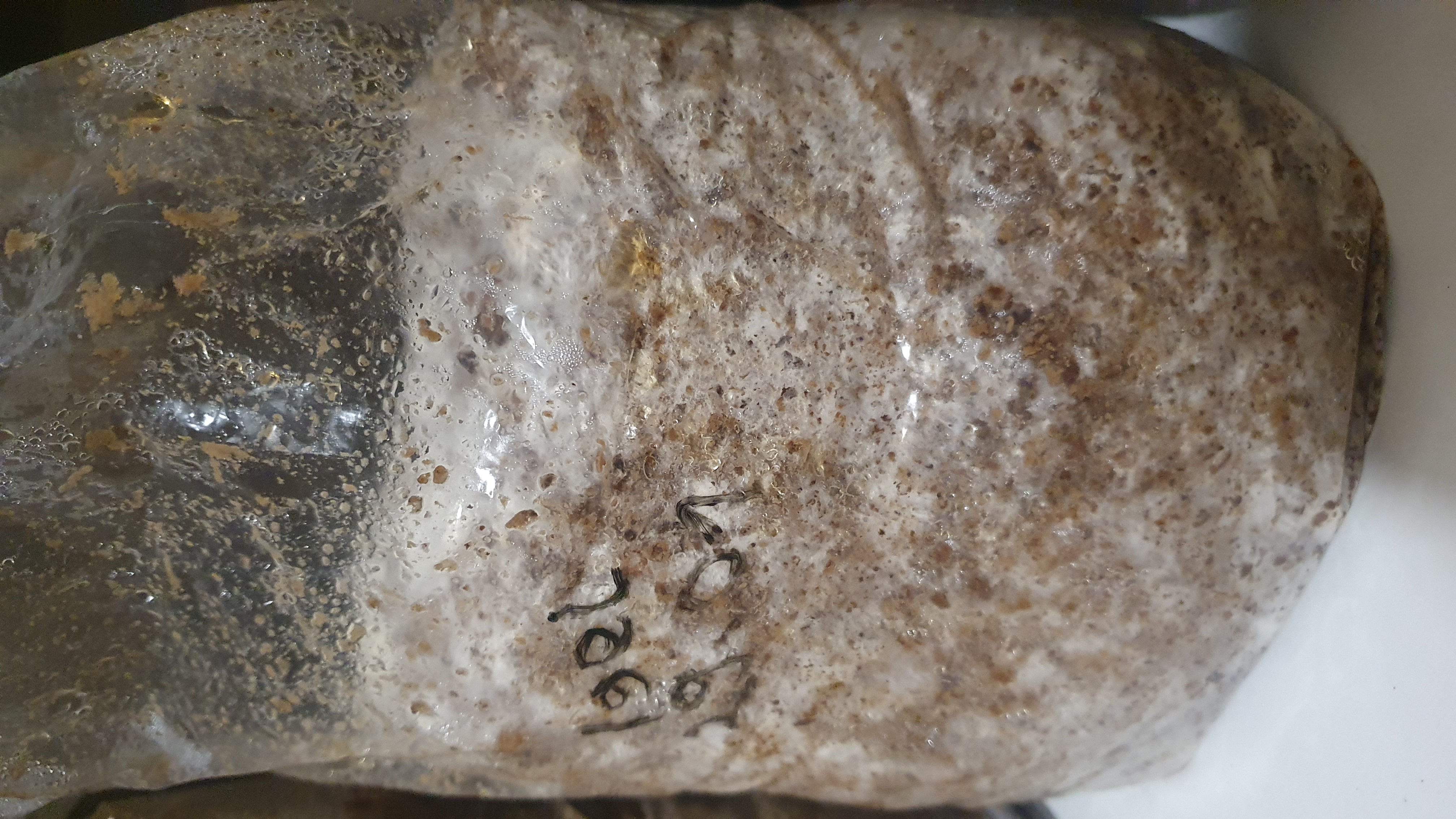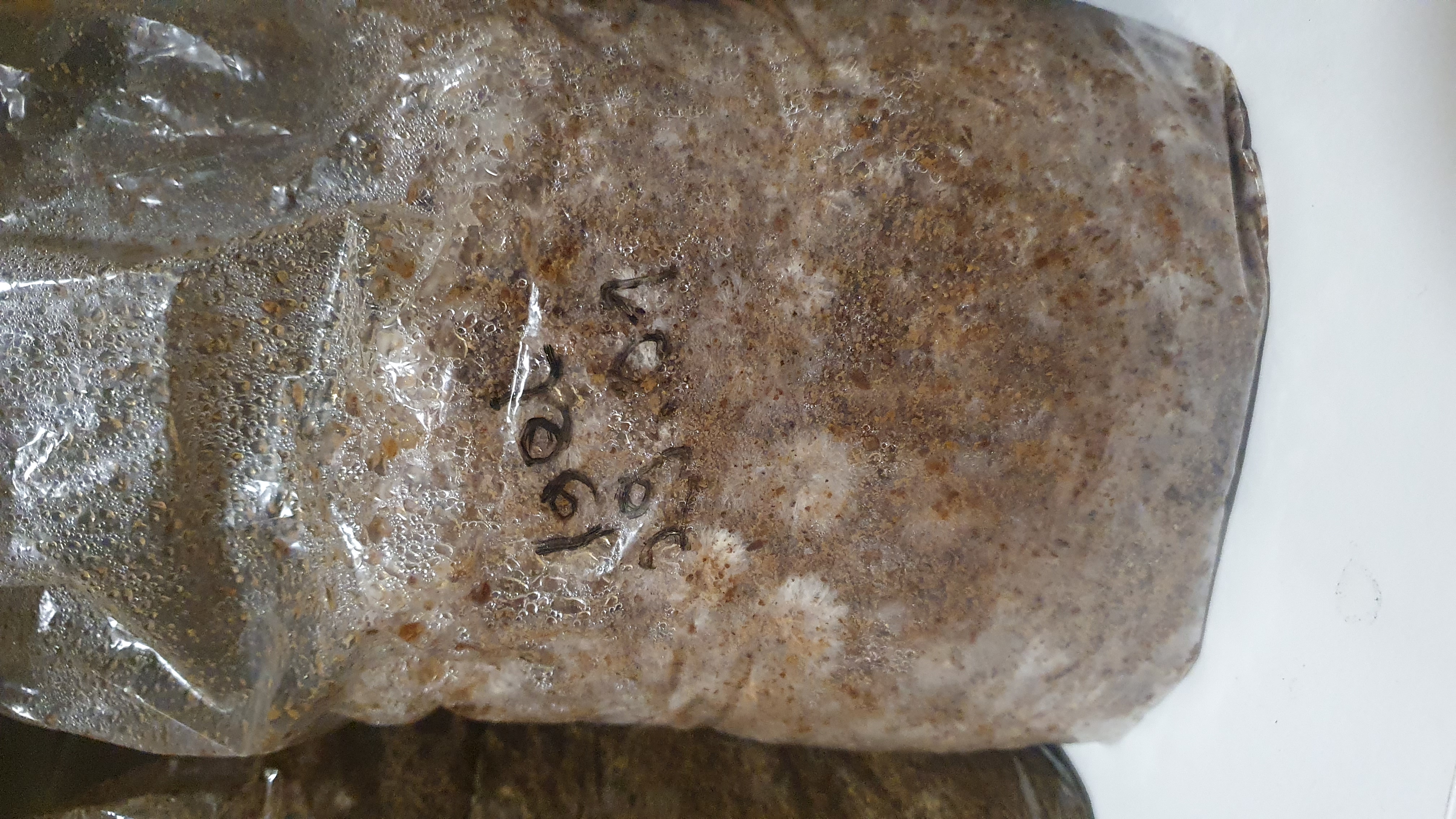 Wie zu erwarten bildete sich um die Pilzstücke nach ein paar Tagen eine Kontie aus, schade drum - dachte ich! Zum Glück nicht entsorgt und mal im Schrank stehen gelassen - siehe da schnell zeigte sich Myzel welches nach ein paar Wochen zu fruchten begann, es wurde überimpft sowie Körnerbrut angesetzt.
